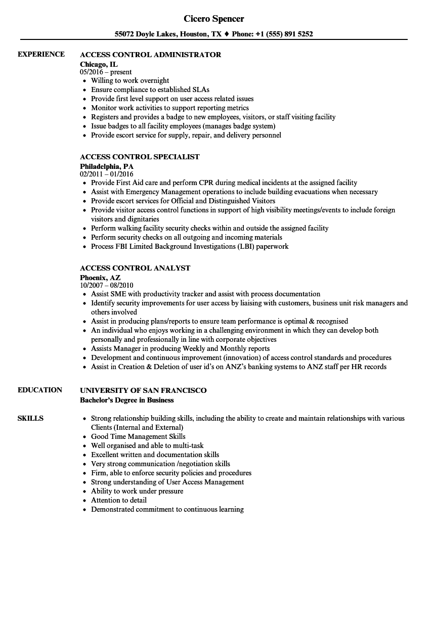 Guide the recruiter to the conclusion that you are the best candidate for the access control job. It’s actually very simple. Tailor your resume by picking relevant responsibilities from the examples below and then add your accomplishments. This way, you can position yourself in the best way to get hired.