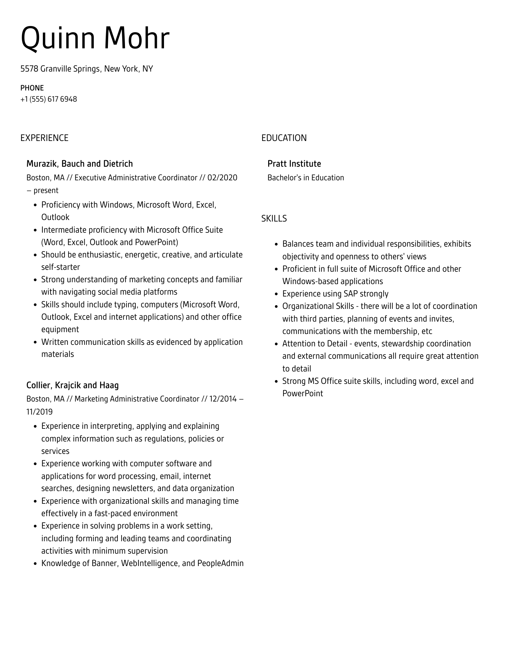 Administrative Coordinator Resume Examples & Samples
