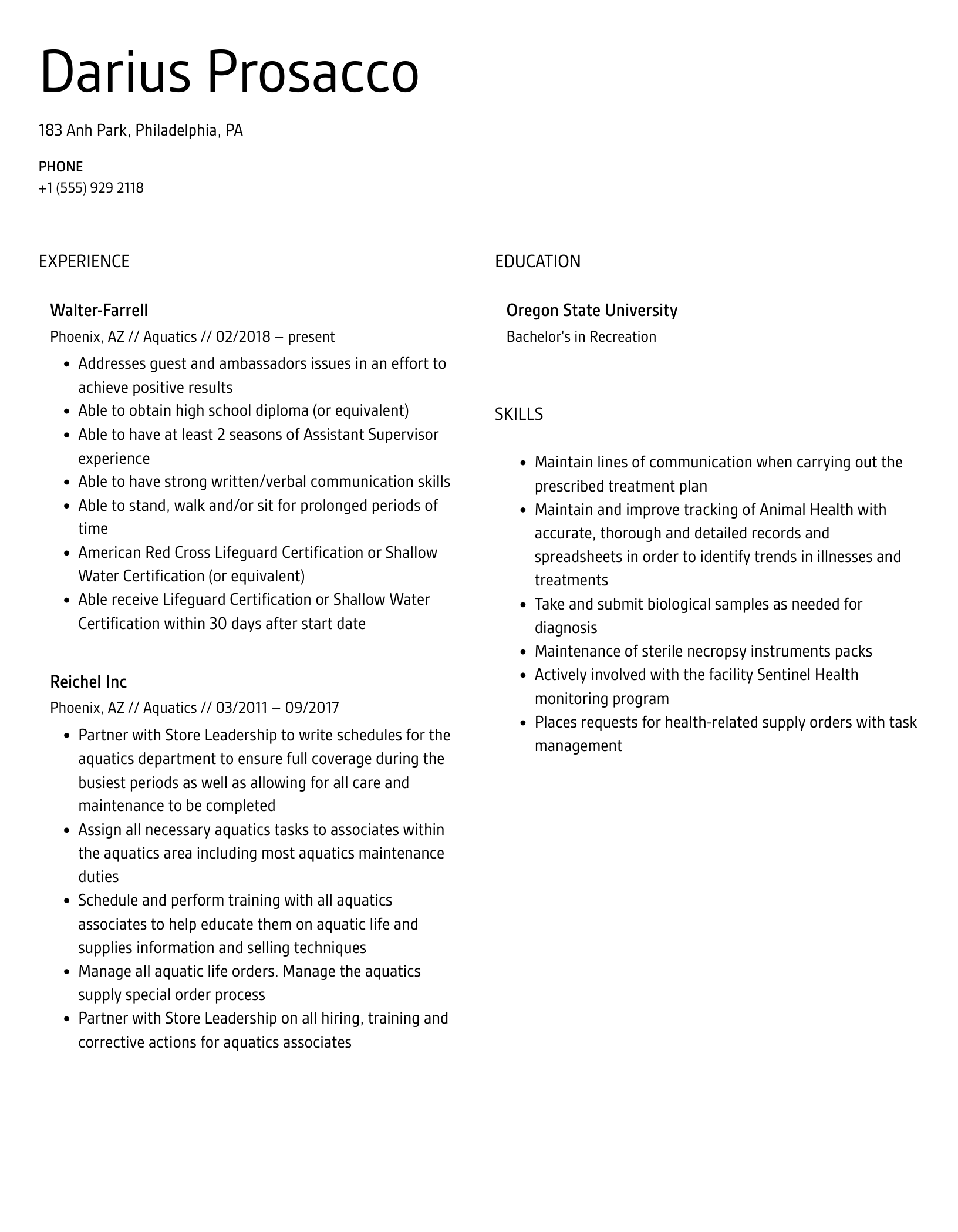 Aquatics Resume Samples