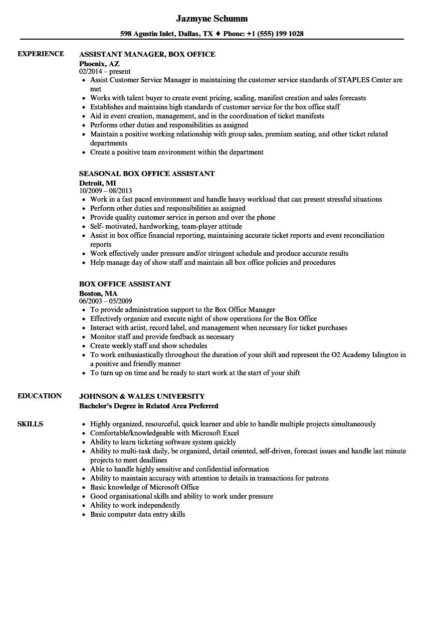Box Office Assistant Resume Samples