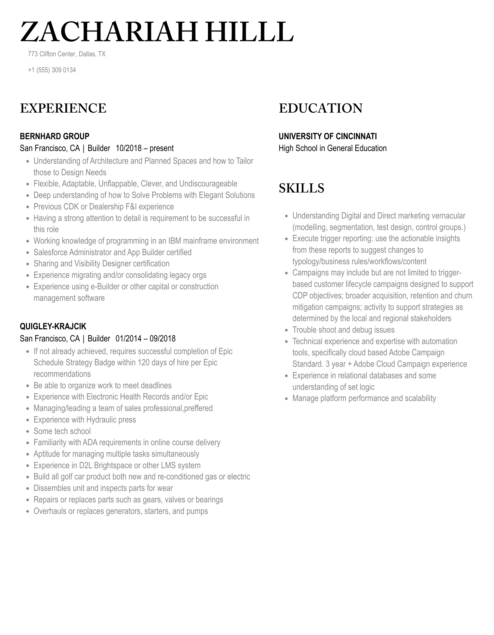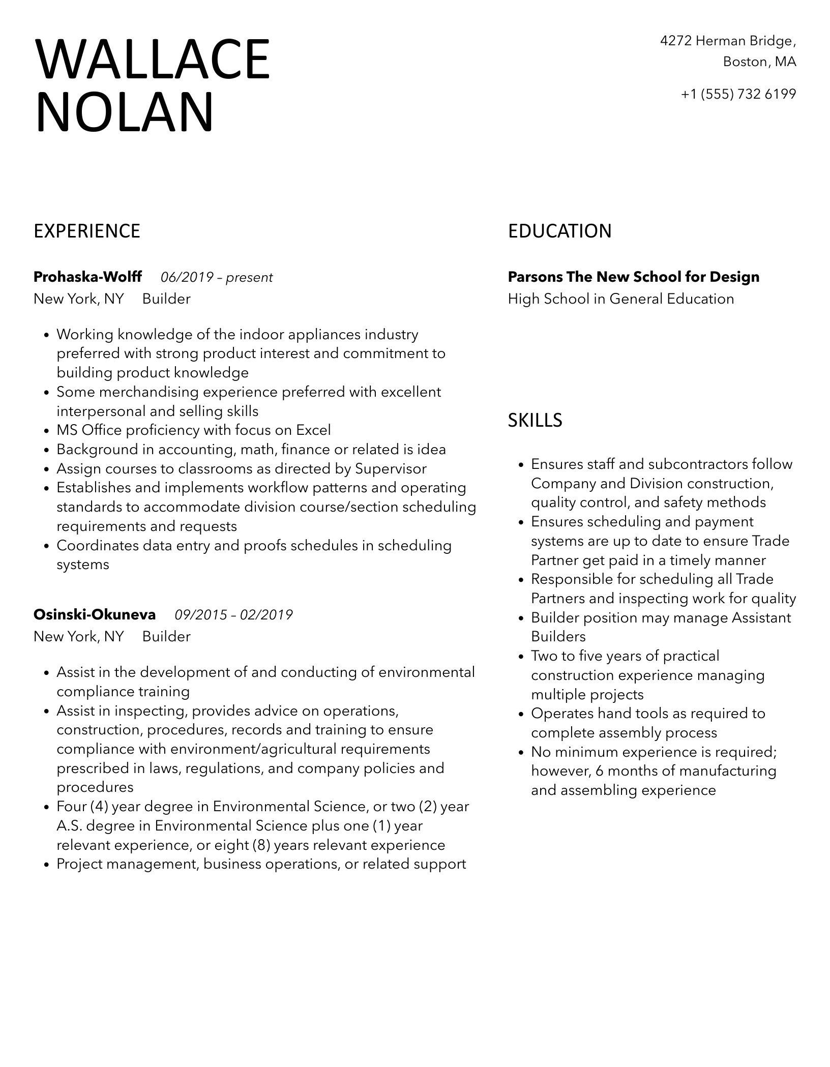 Guide the recruiter to the conclusion that you are the best candidate for the builder job. It’s actually very simple. Tailor your resume by picking relevant responsibilities from the examples below and then add your accomplishments. This way, you can position yourself in the best way to get hired.
