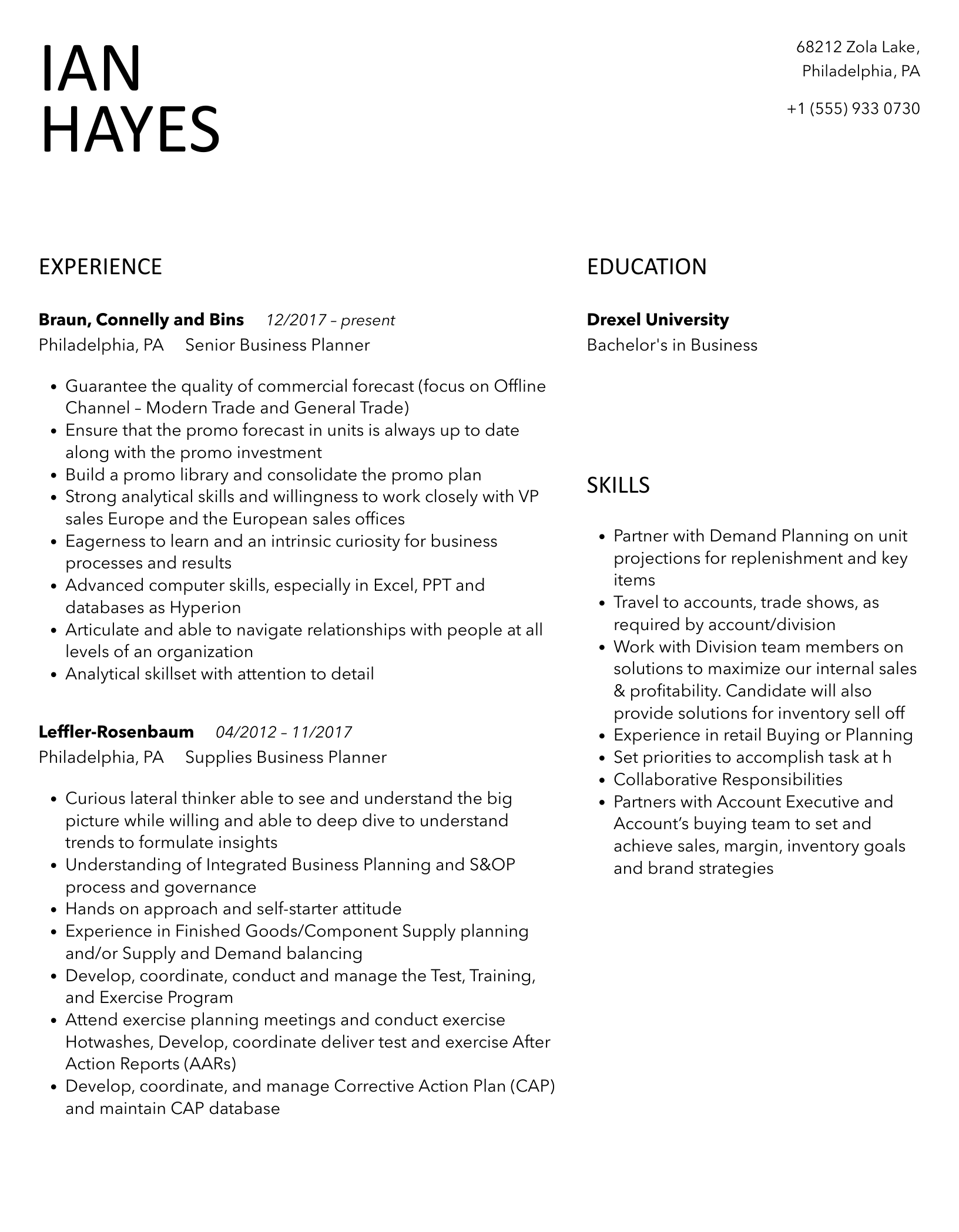 Guide the recruiter to the conclusion that you are the best candidate for the business planner job. It’s actually very simple. Tailor your resume by picking relevant responsibilities from the examples below and then add your accomplishments. This way, you can position yourself in the best way to get hired.