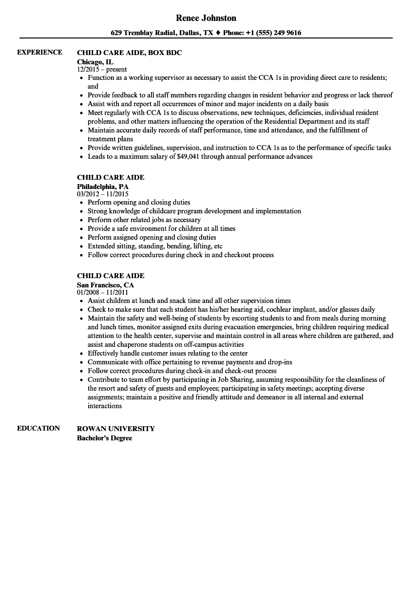 Child Care Aide-west Lafayette Resume Examples & Samples