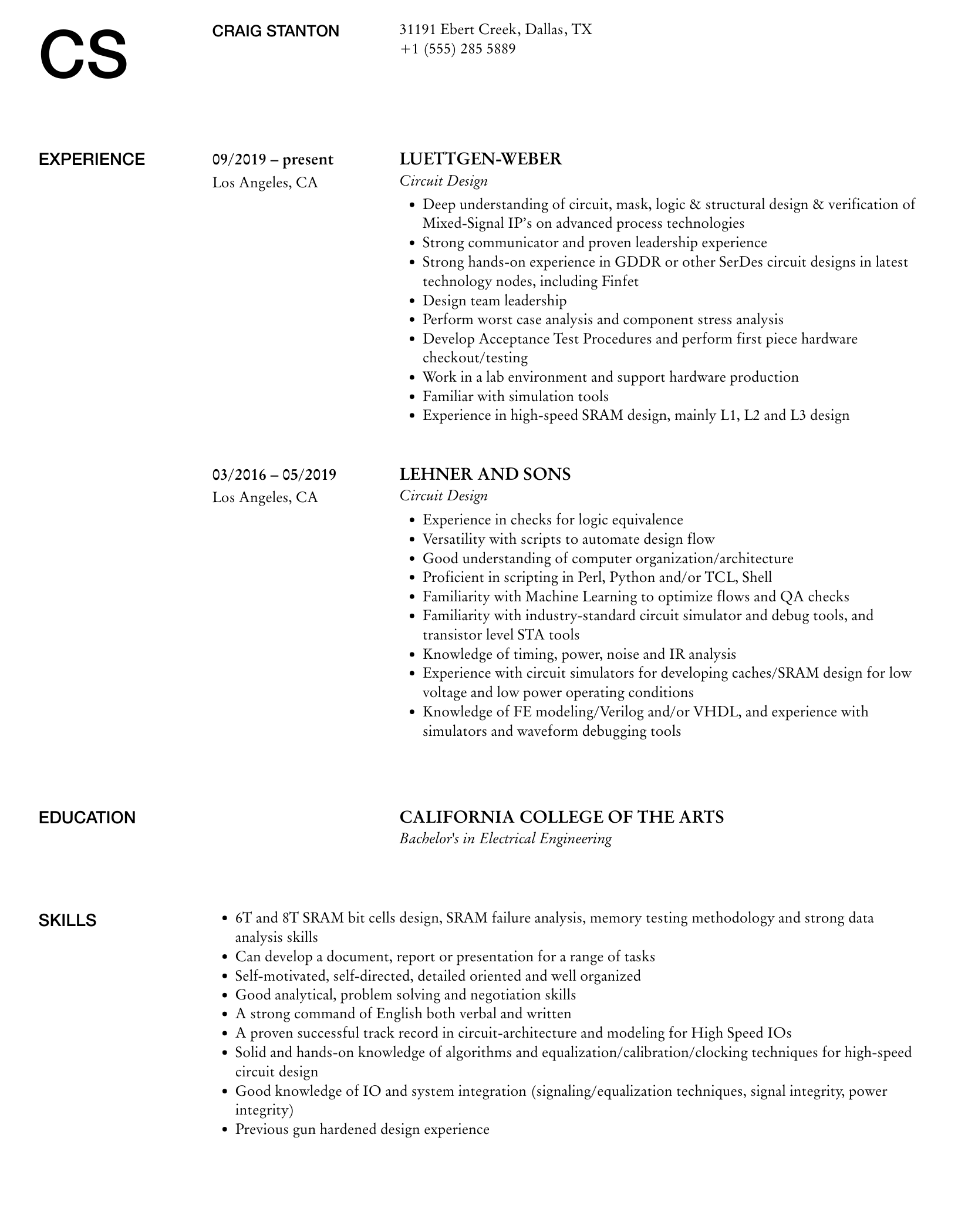Guide the recruiter to the conclusion that you are the best candidate for the circuit design job. It’s actually very simple. Tailor your resume by picking relevant responsibilities from the examples below and then add your accomplishments. This way, you can position yourself in the best way to get hired.
