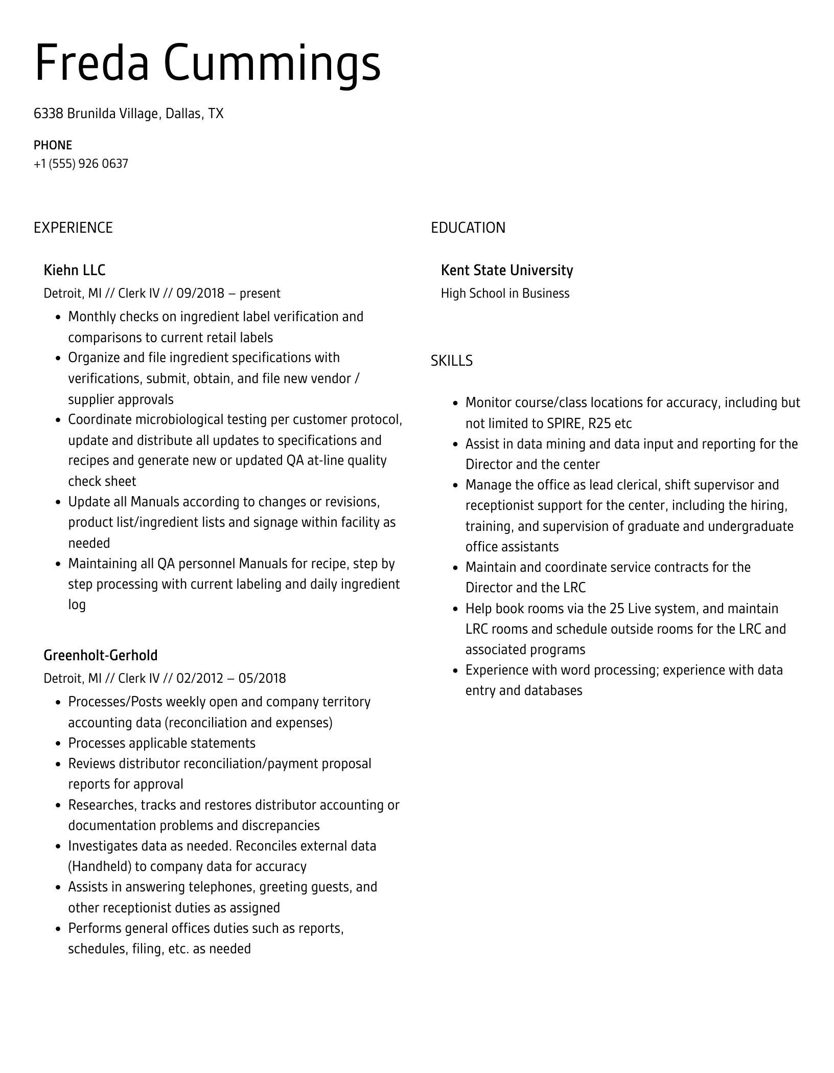 Clerk Iv-west Lafayette Resume Examples & Samples