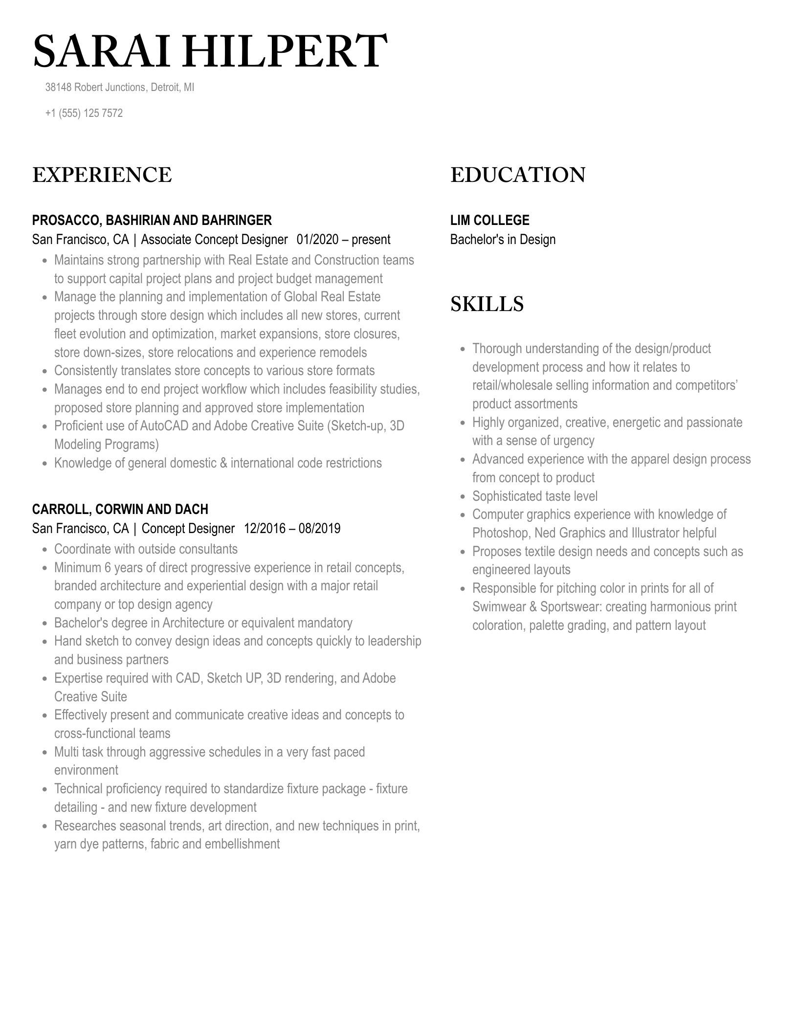 Concept Designer Hugo Menswear Resume Examples & Samples