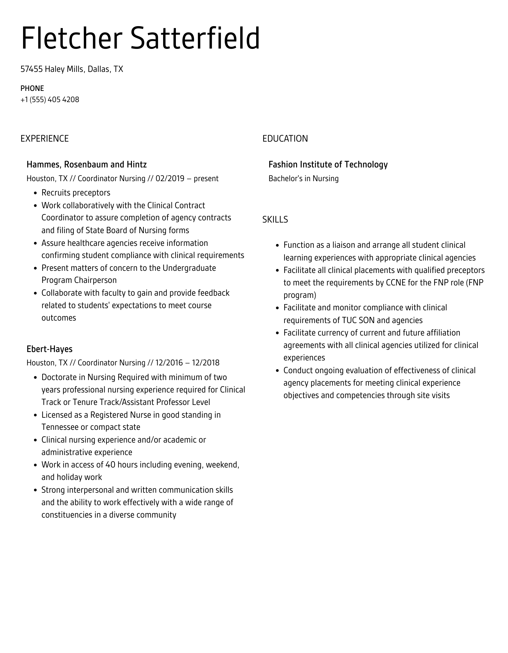 Guide the recruiter to the conclusion that you are the best candidate for the coordinator nursing job. It’s actually very simple. Tailor your resume by picking relevant responsibilities from the examples below and then add your accomplishments. This way, you can position yourself in the best way to get hired.