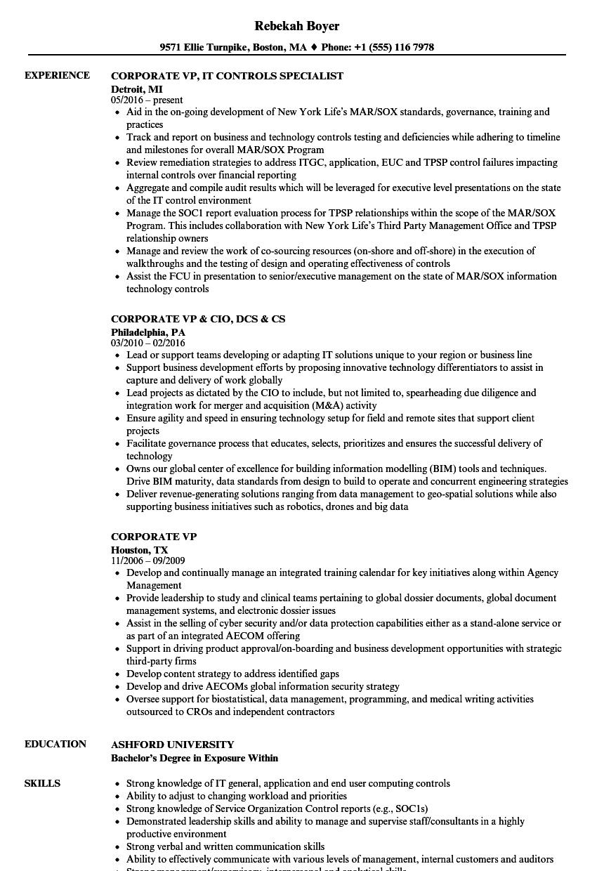 Corporate VP Resume Samples
