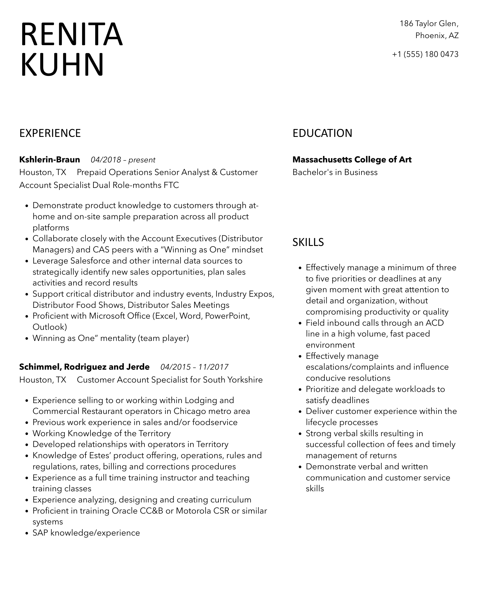 Guide the recruiter to the conclusion that you are the best candidate for the customer account specialist job. It’s actually very simple. Tailor your resume by picking relevant responsibilities from the examples below and then add your accomplishments. This way, you can position yourself in the best way to get hired.