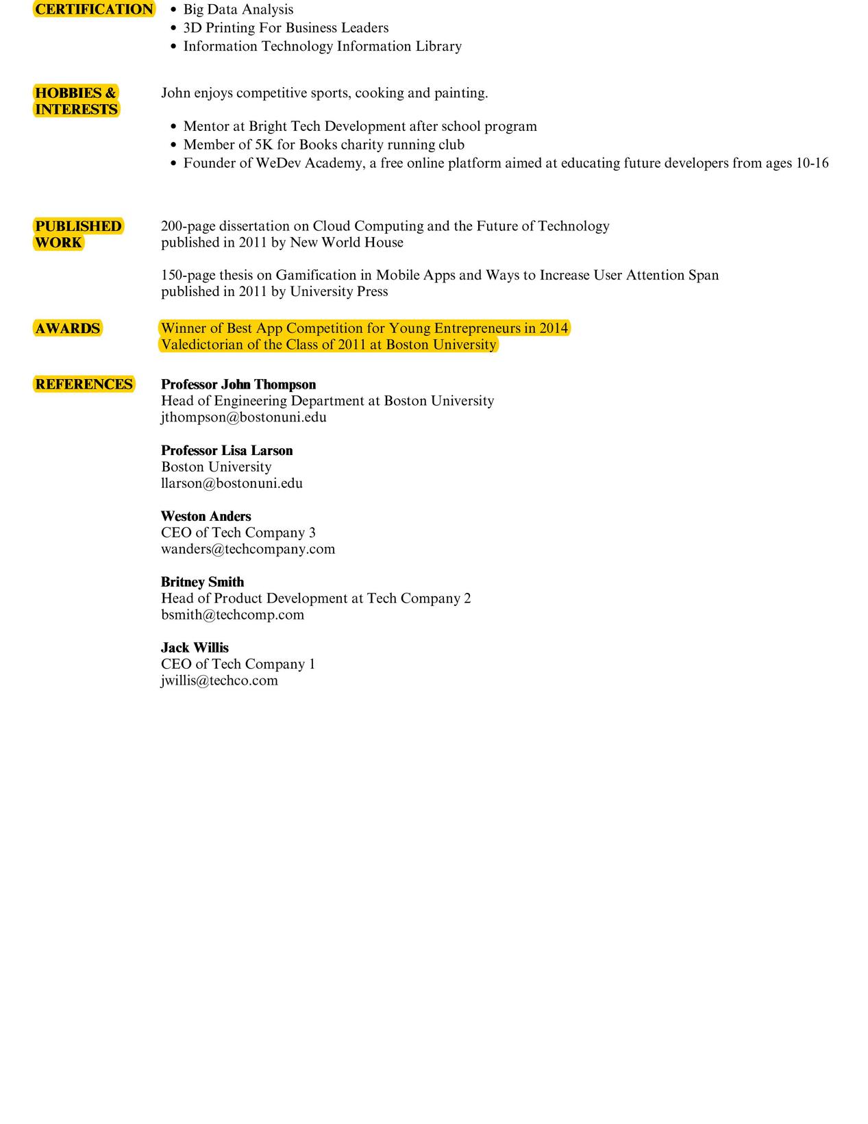 This is what you will find on a resume: