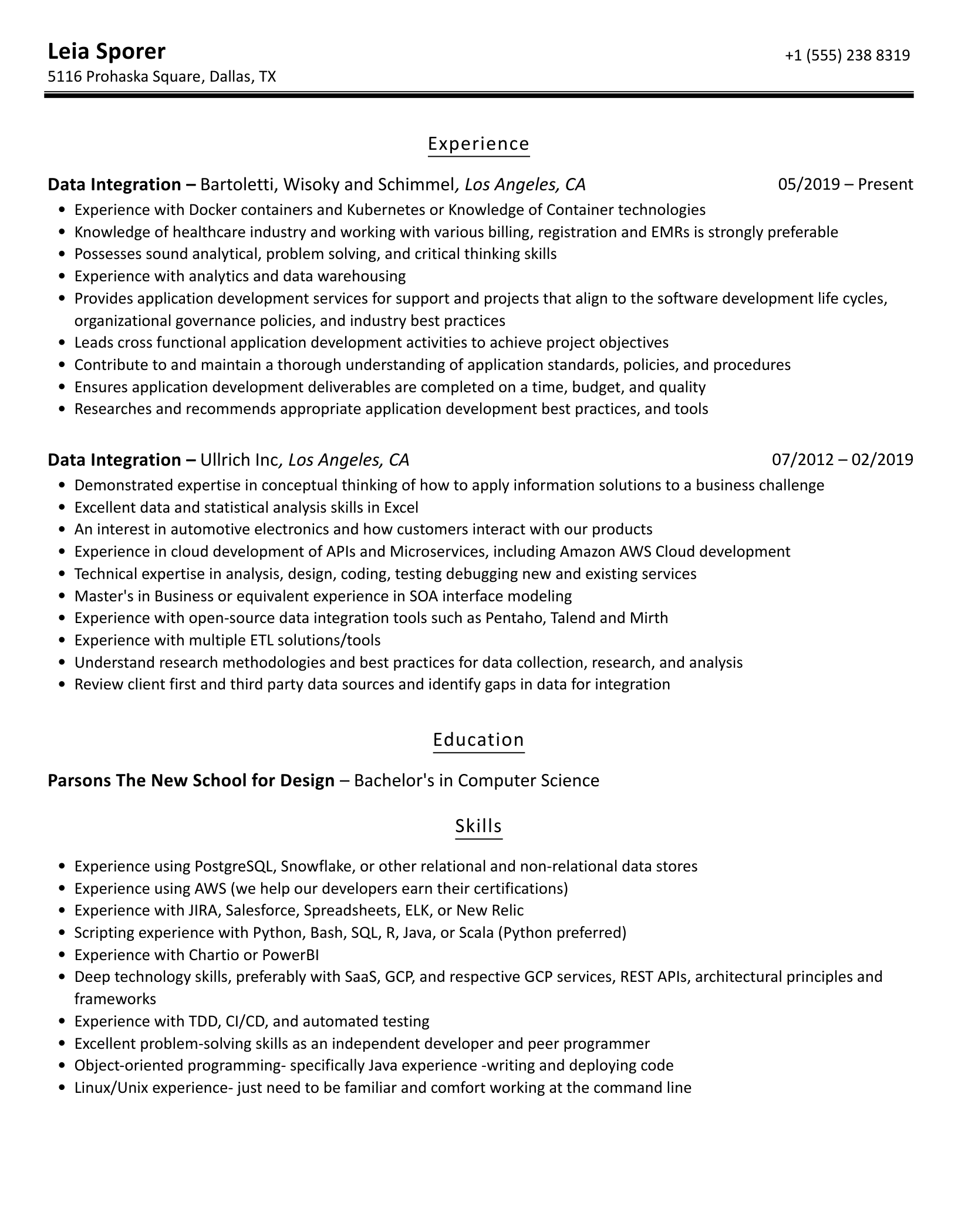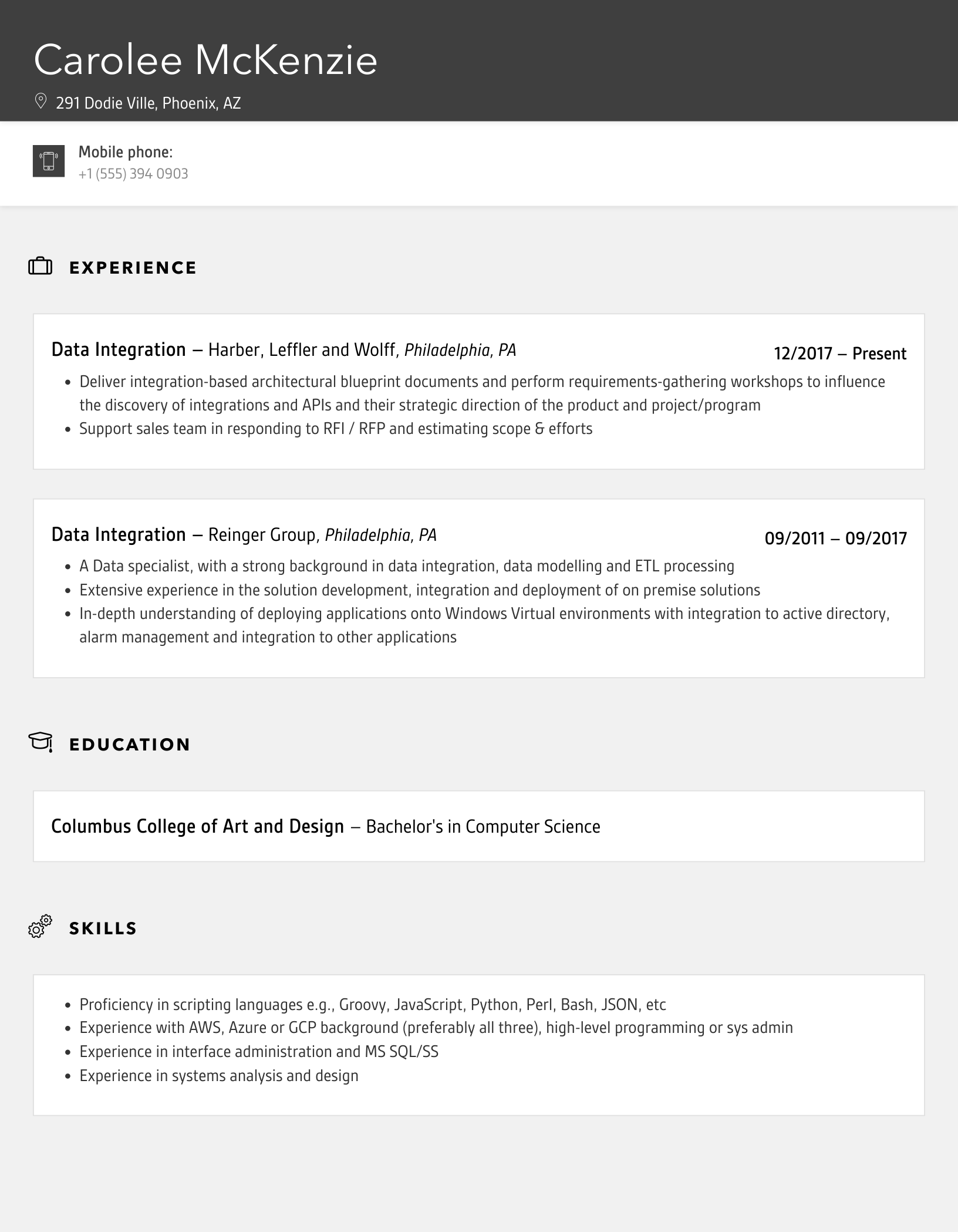 Guide the recruiter to the conclusion that you are the best candidate for the data integration job. It’s actually very simple. Tailor your resume by picking relevant responsibilities from the examples below and then add your accomplishments. This way, you can position yourself in the best way to get hired.