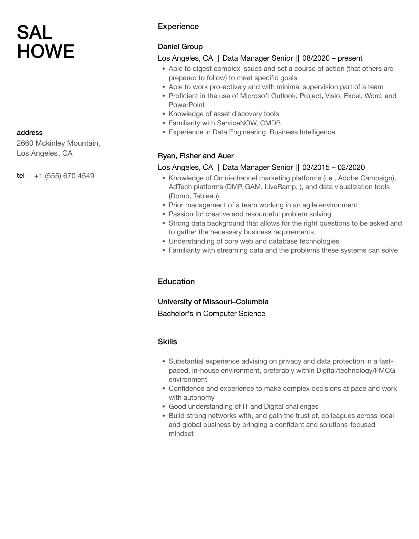 Guide the recruiter to the conclusion that you are the best candidate for the data manager senior job. It’s actually very simple. Tailor your resume by picking relevant responsibilities from the examples below and then add your accomplishments. This way, you can position yourself in the best way to get hired.