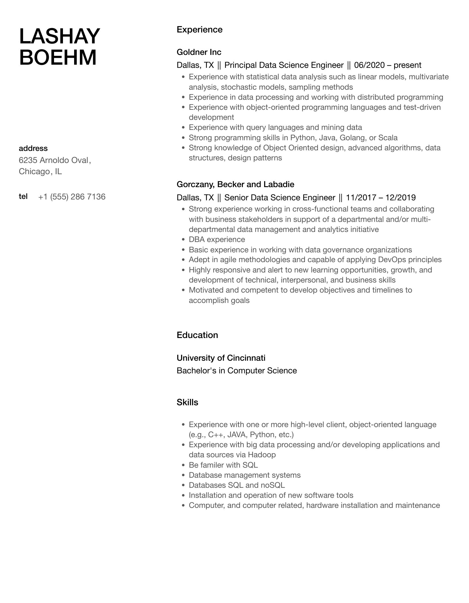 Guide the recruiter to the conclusion that you are the best candidate for the data science engineer job. It’s actually very simple. Tailor your resume by picking relevant responsibilities from the examples below and then add your accomplishments. This way, you can position yourself in the best way to get hired.