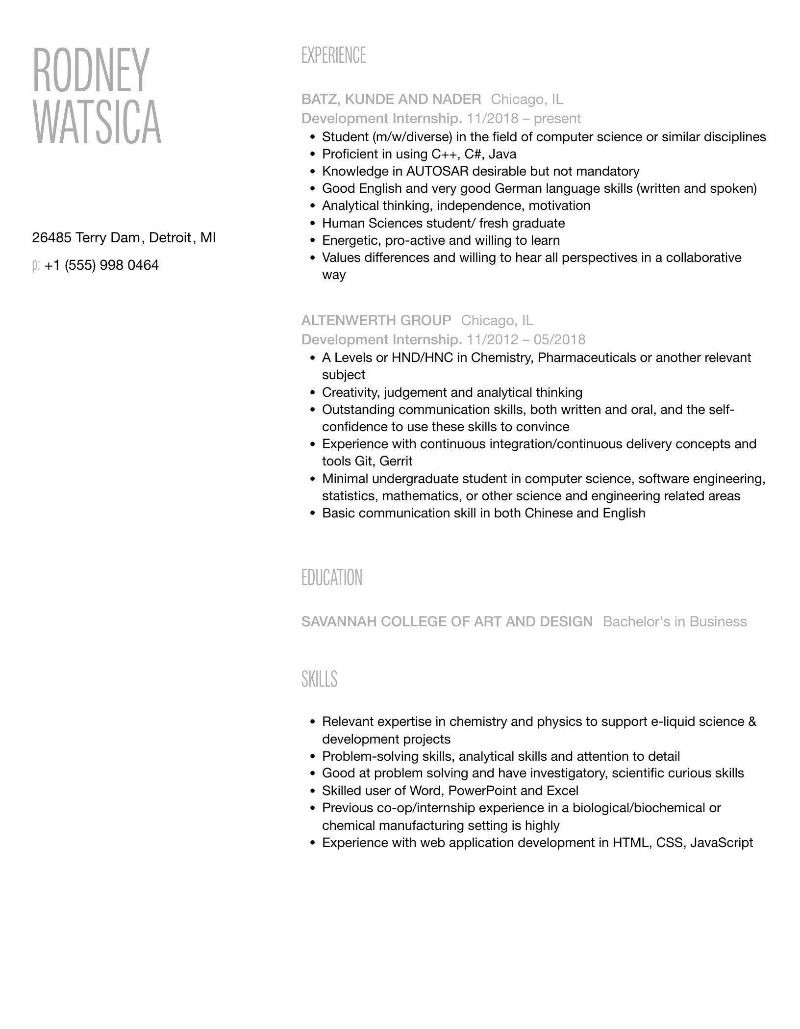 - Major in Product Development or a related field