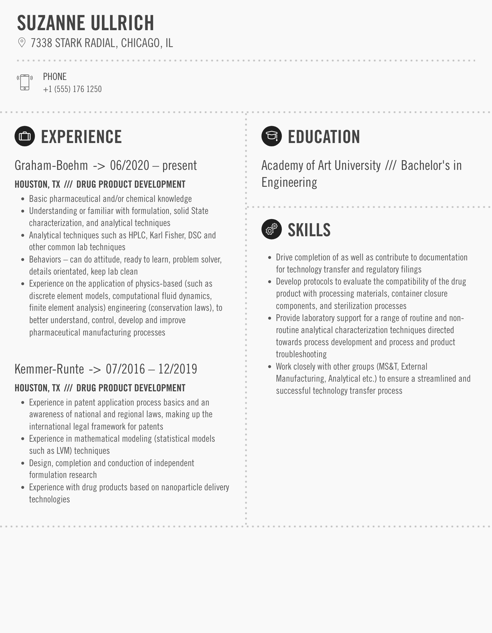 Guide the recruiter to the conclusion that you are the best candidate for the drug product development job. It’s actually very simple. Tailor your resume by picking relevant responsibilities from the examples below and then add your accomplishments. This way, you can position yourself in the best way to get hired.