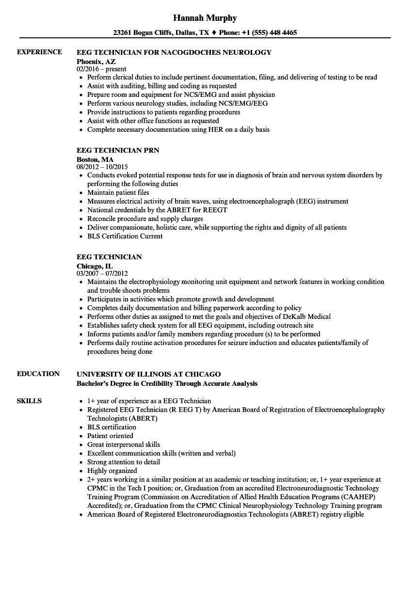 Eeg Technician Resume Examples & Samples