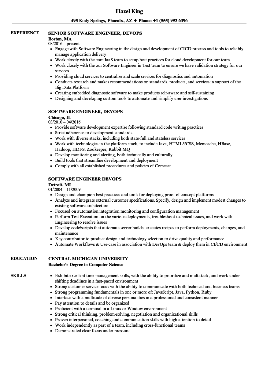 Guide the recruiter to the conclusion that you are the best candidate for the engineer, devops job. It’s actually very simple. Tailor your resume by picking relevant responsibilities from the examples below and then add your accomplishments. This way, you can position yourself in the best way to get hired.