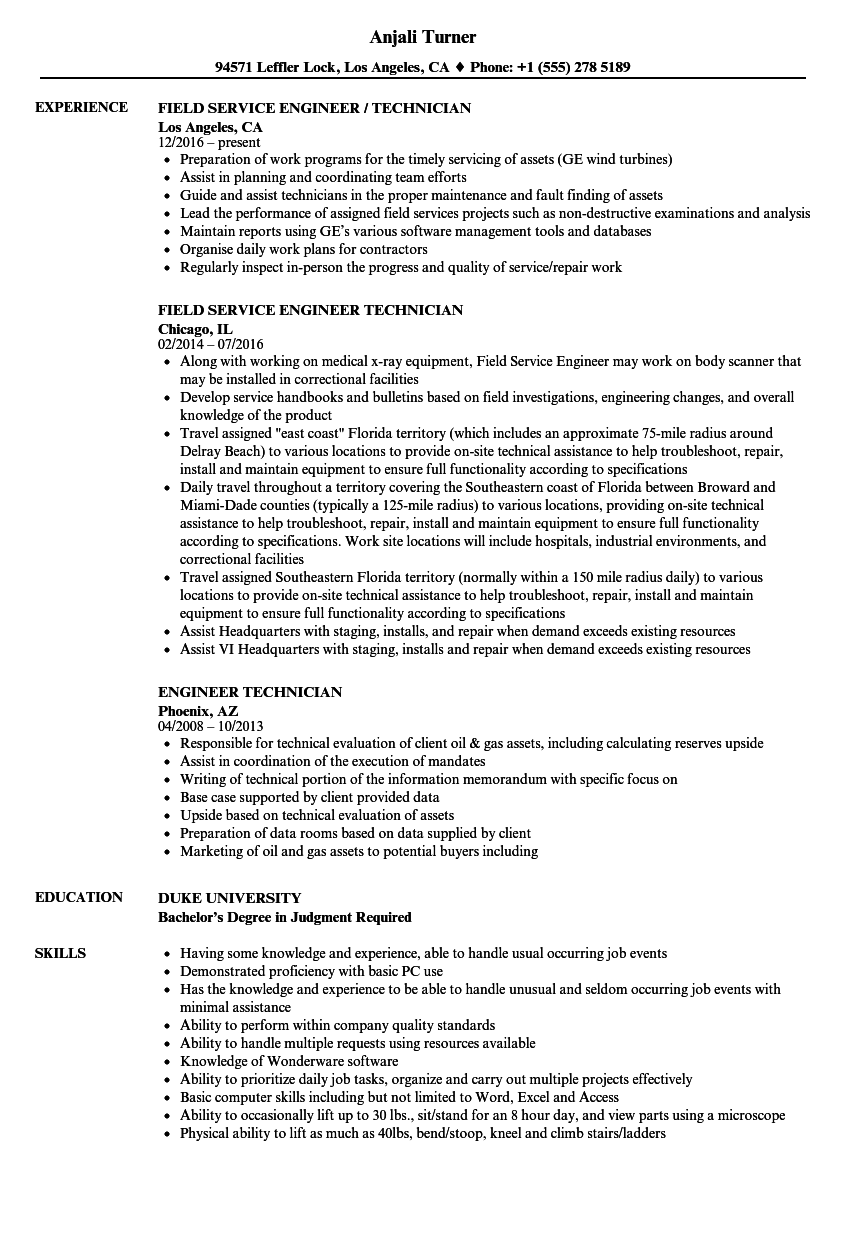 Guide the recruiter to the conclusion that you are the best candidate for the engineer technician job. It’s actually very simple. Tailor your resume by picking relevant responsibilities from the examples below and then add your accomplishments. This way, you can position yourself in the best way to get hired.