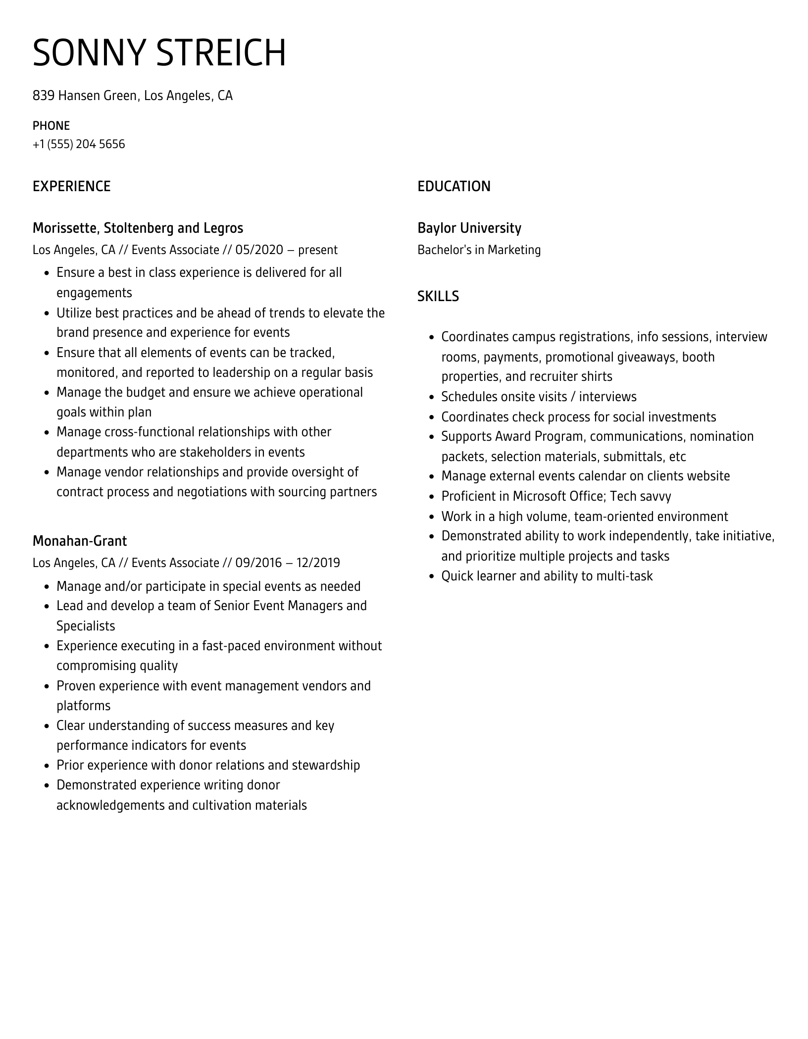 Guide the recruiter to the conclusion that you are the best candidate for the events associate job. It’s actually very simple. Tailor your resume by picking relevant responsibilities from the examples below and then add your accomplishments. This way, you can position yourself in the best way to get hired.