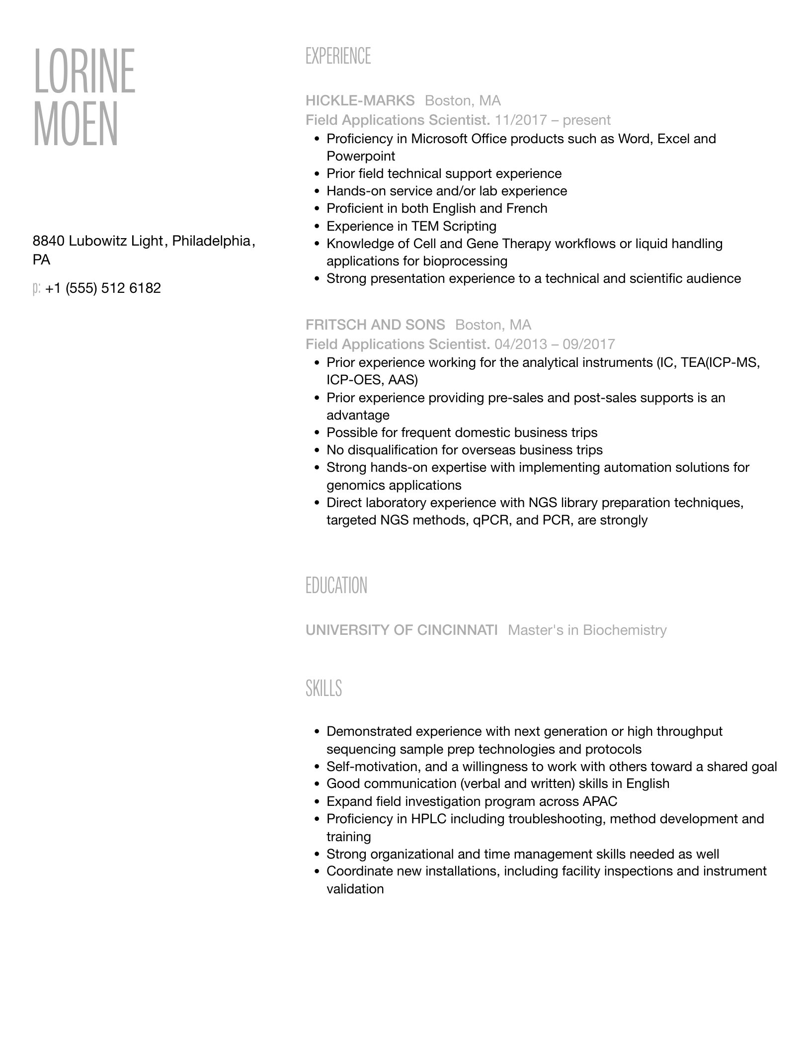 Field Applications Scientist San Francisco Bay Area Resume Examples & Samples
