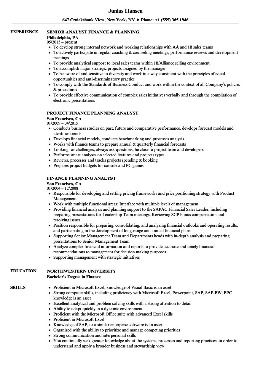 Senior Analyst Finance & Planning Resume Examples & Samples