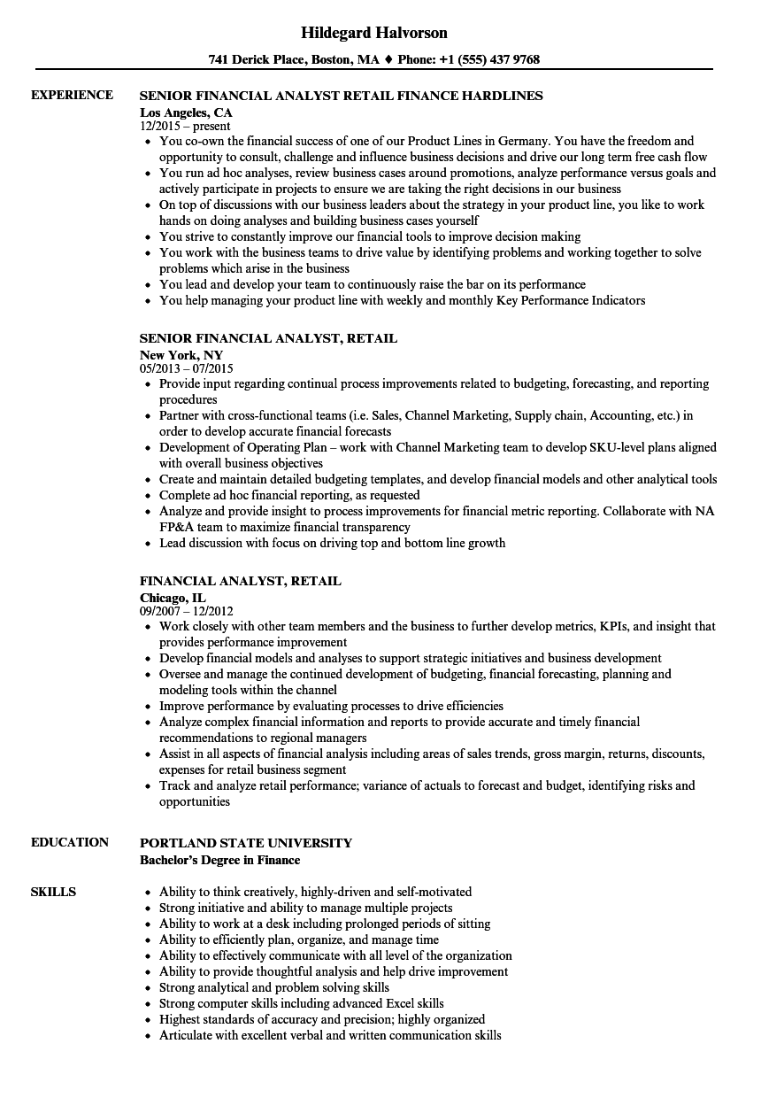 8 Financial Analyst, Retail resume templates