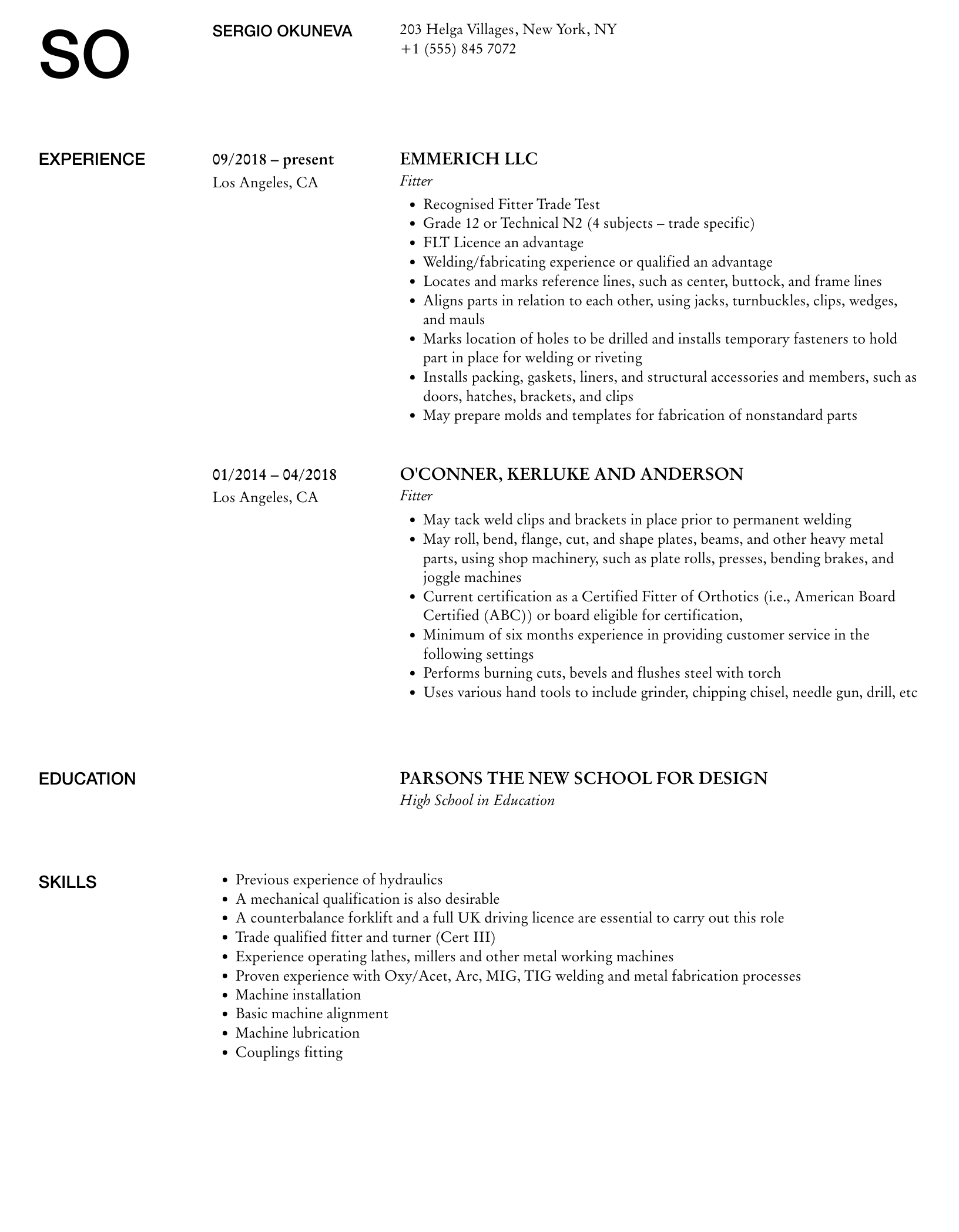 Fitter Resume Examples & Samples