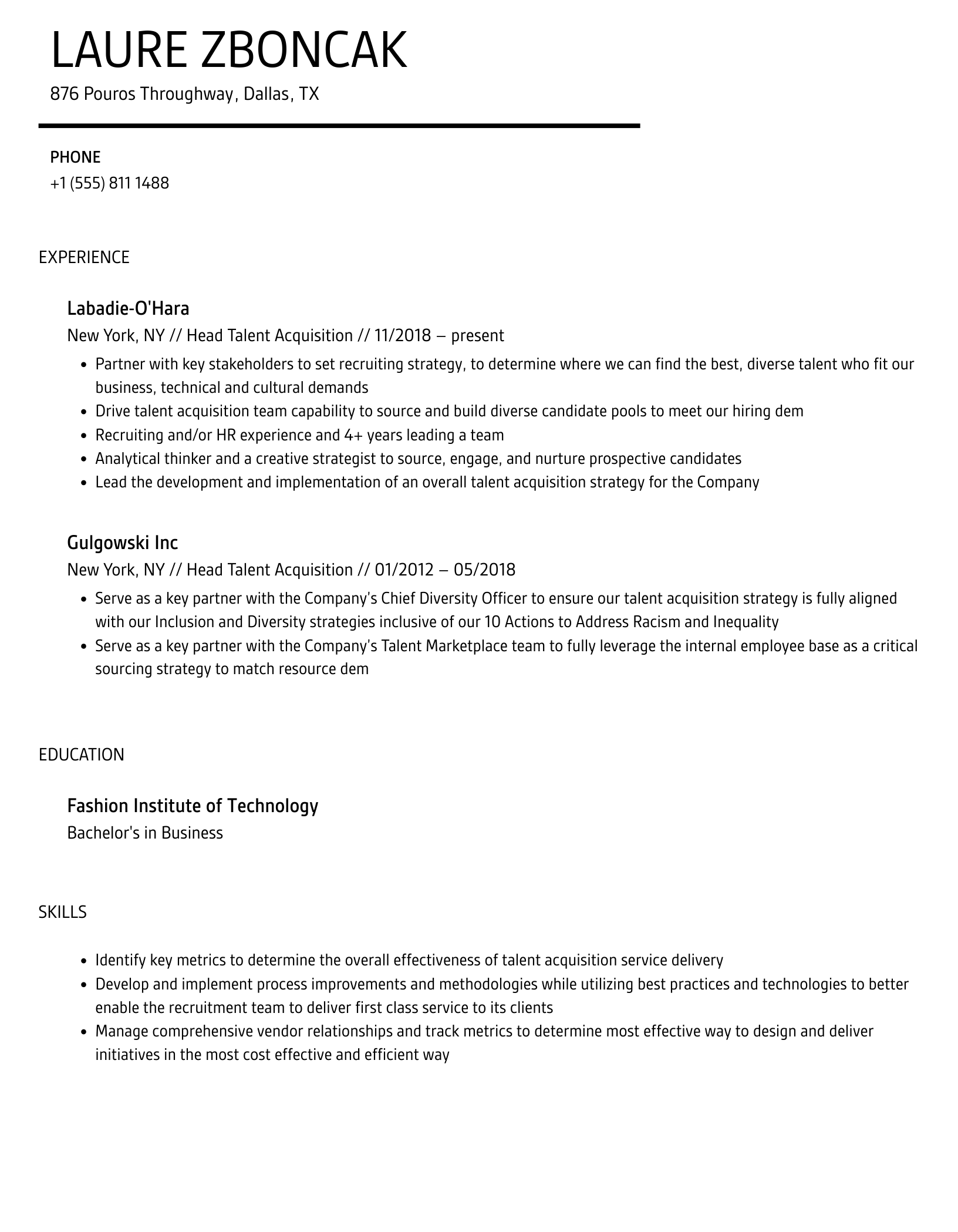 Head Talent Acquisition Resume Examples & Samples