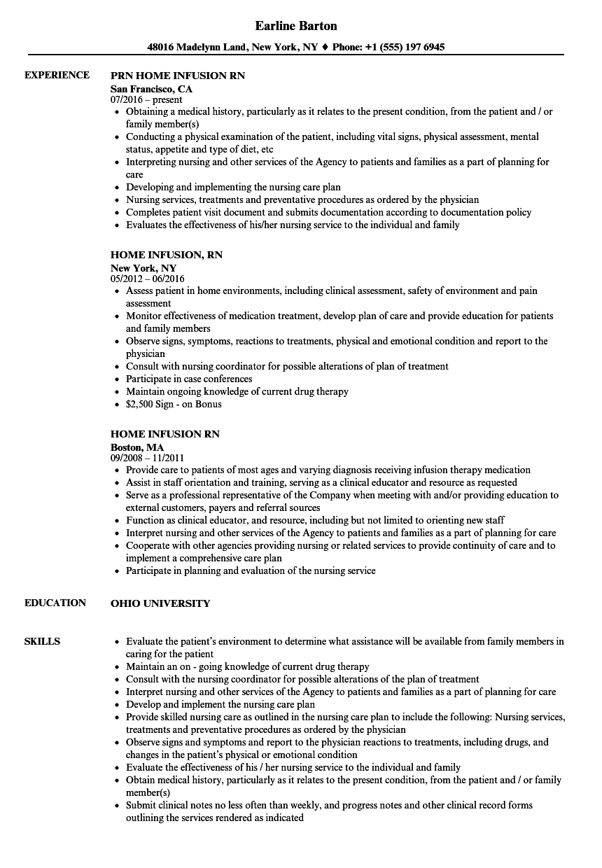 PRN Home Infusion RN Resume Examples & Samples
