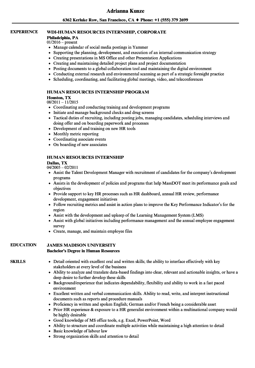Human Resources Internship Resume Samples