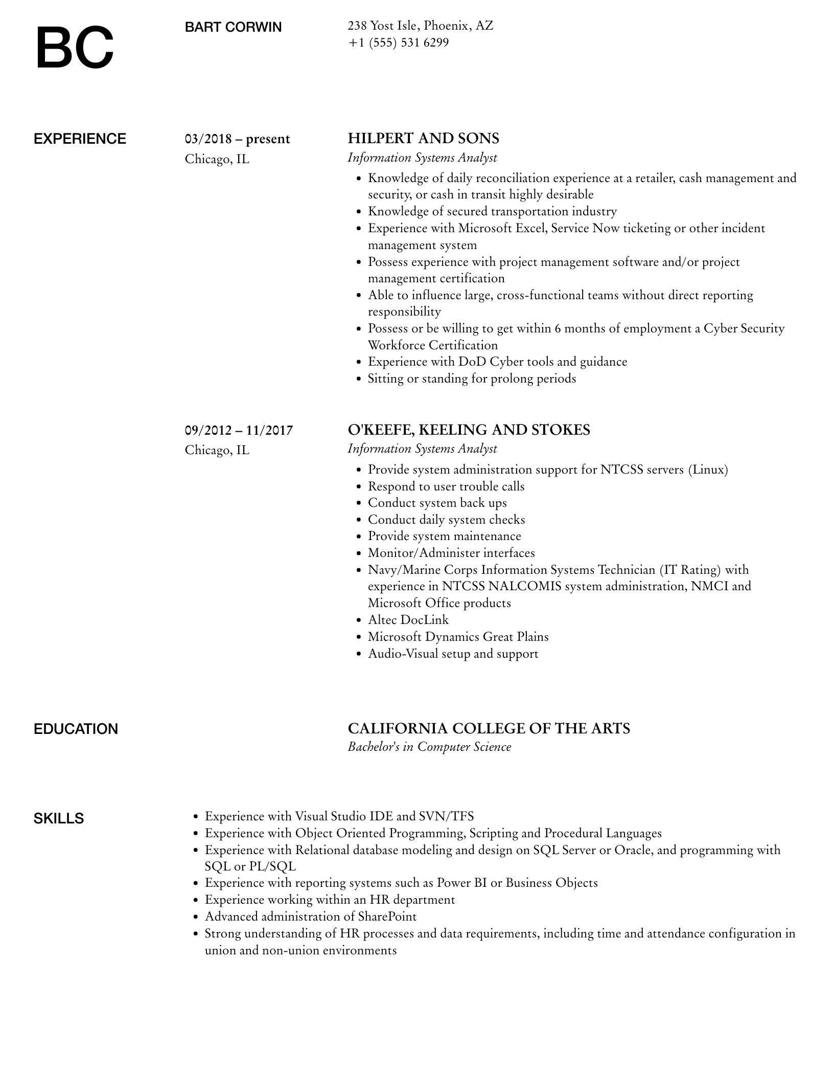 Guide the recruiter to the conclusion that you are the best candidate for the information systems analyst job. It’s actually very simple. Tailor your resume by picking relevant responsibilities from the examples below and then add your accomplishments. This way, you can position yourself in the best way to get hired.