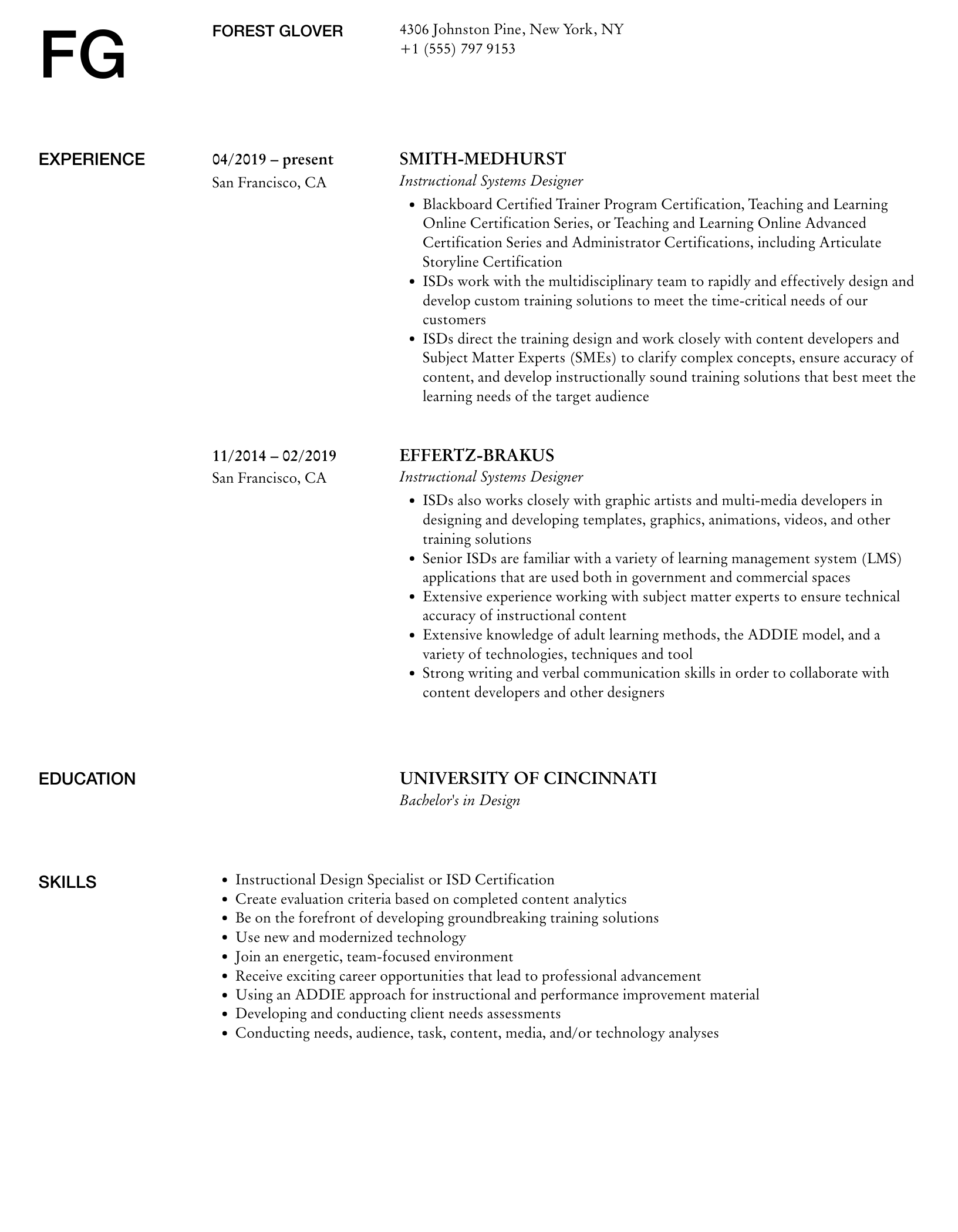Instructional Systems Designer, Junior Resume Examples & Samples