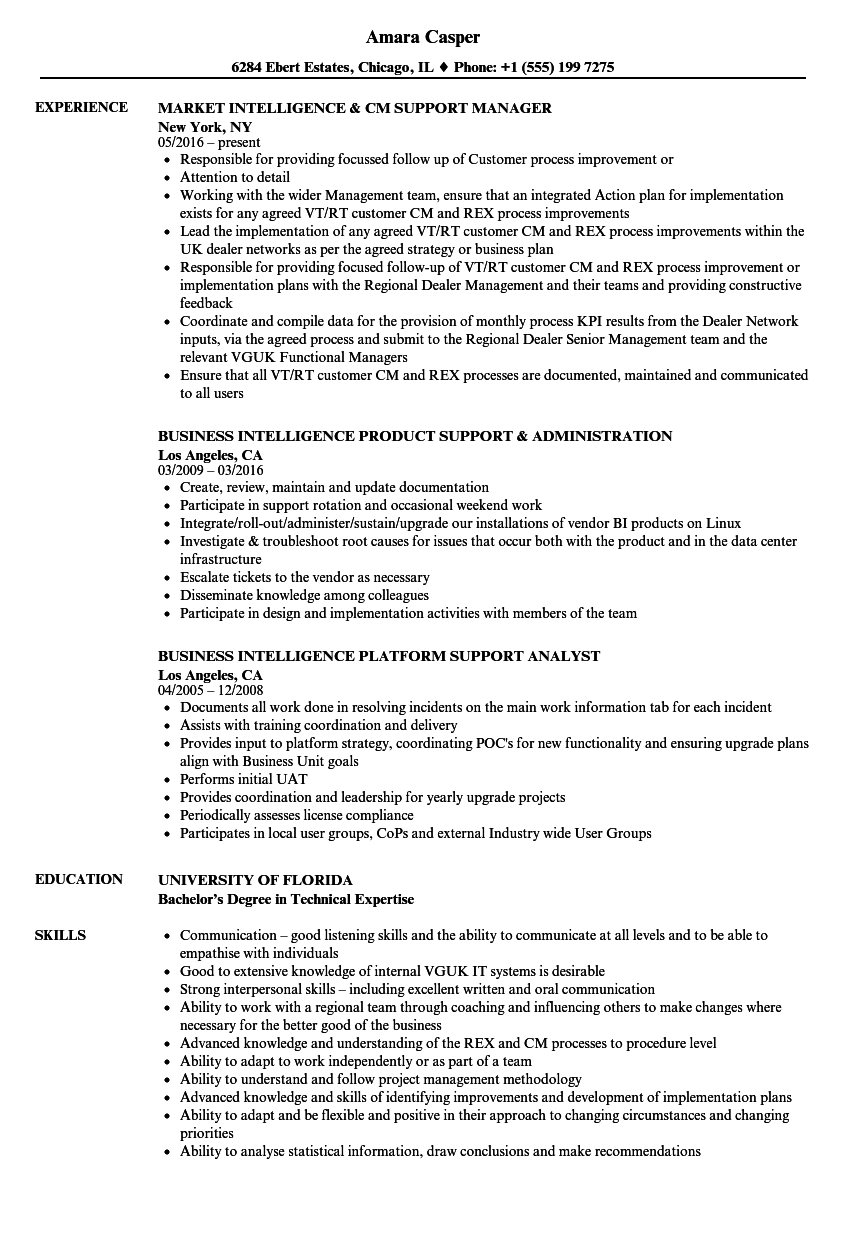 Internship Business Intelligence Support & Maintenance Resume Examples & Samples
