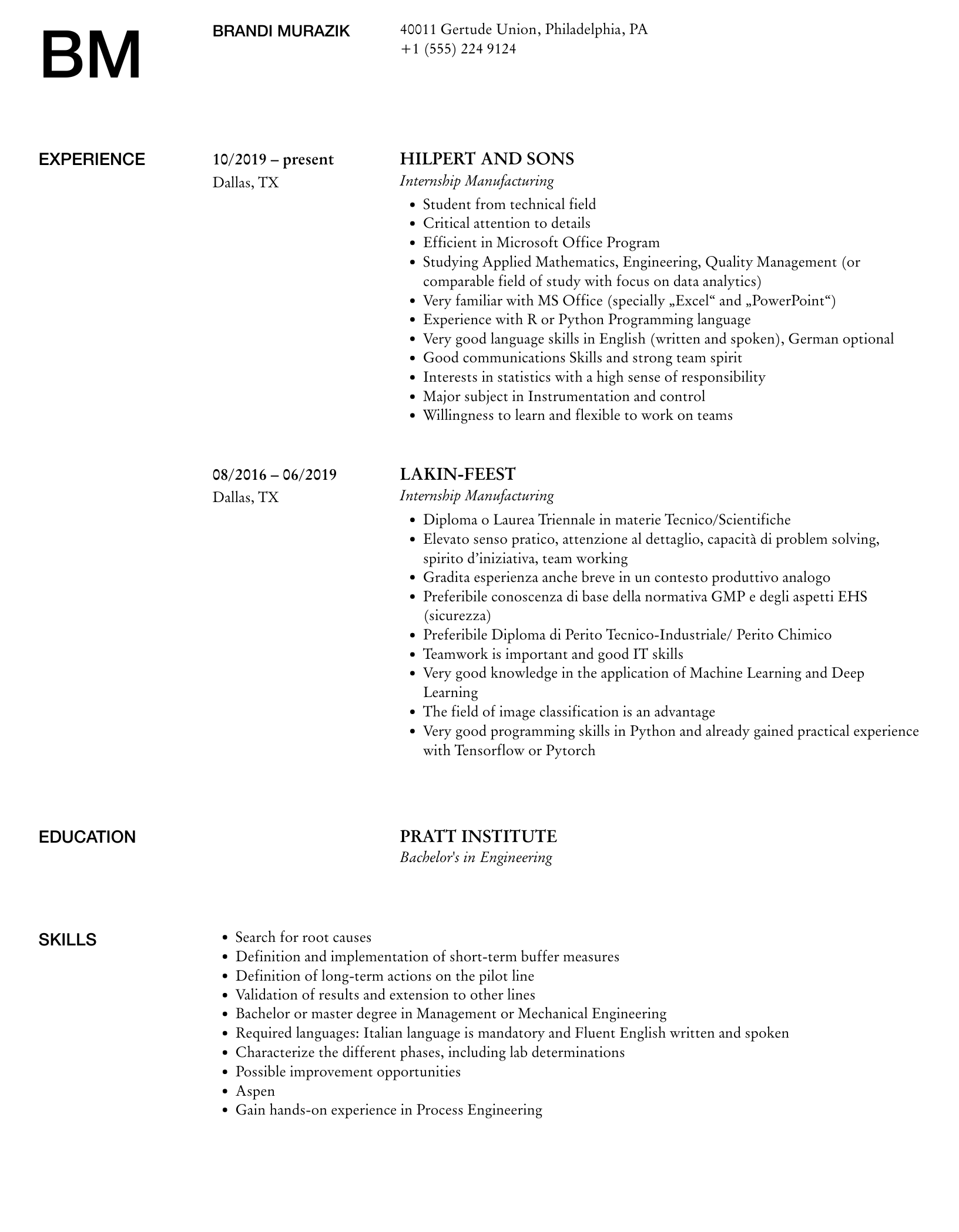 Guide the recruiter to the conclusion that you are the best candidate for the internship manufacturing job. It’s actually very simple. Tailor your resume by picking relevant responsibilities from the examples below and then add your accomplishments. This way, you can position yourself in the best way to get hired.