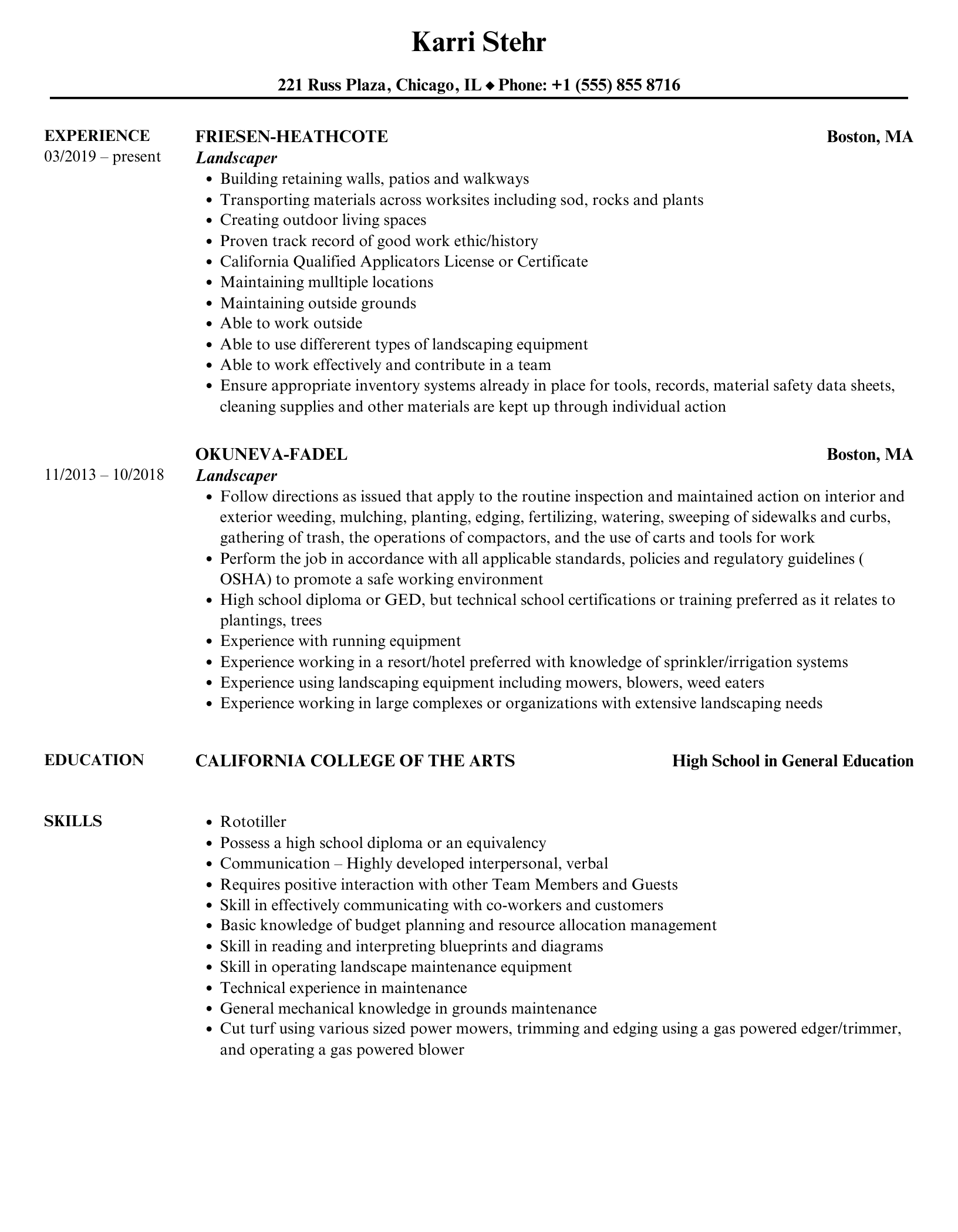 Landscaper Resume Samples
