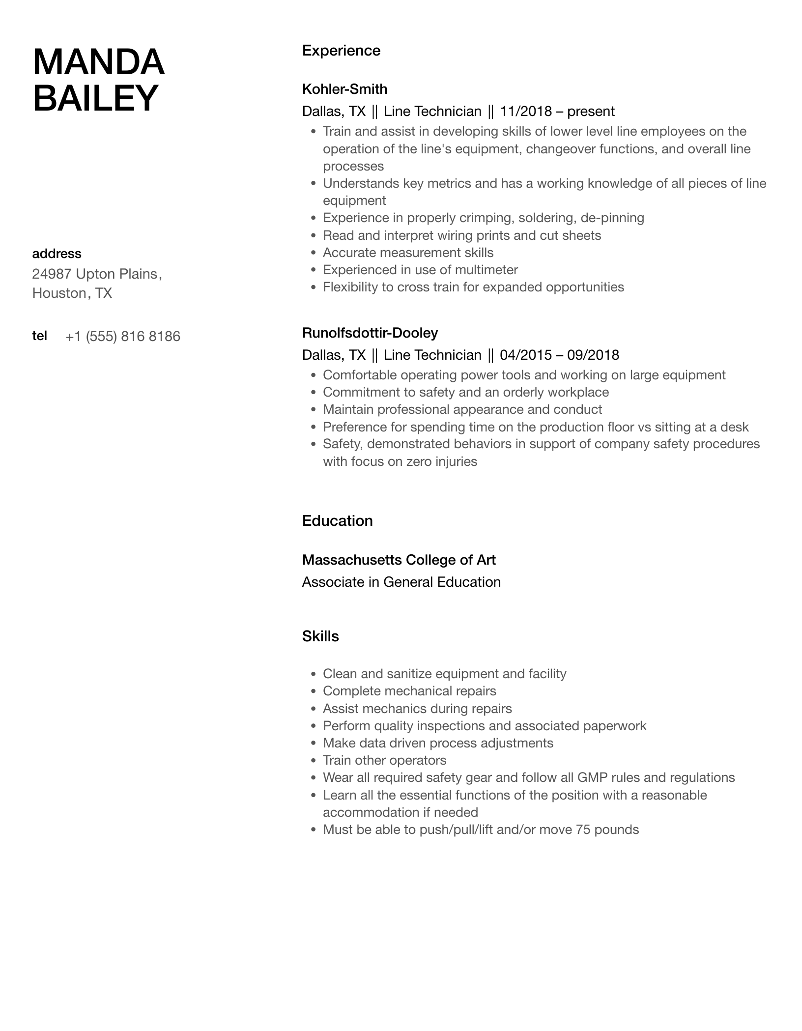 Guide the recruiter to the conclusion that you are the best candidate for the line technician job. It’s actually very simple. Tailor your resume by picking relevant responsibilities from the examples below and then add your accomplishments. This way, you can position yourself in the best way to get hired.