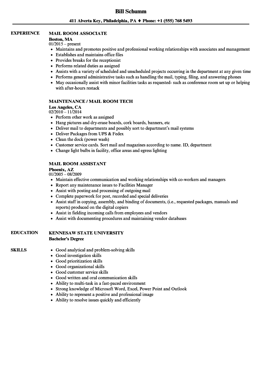 Guide the recruiter to the conclusion that you are the best candidate for the mail room job. It’s actually very simple. Tailor your resume by picking relevant responsibilities from the examples below and then add your accomplishments. This way, you can position yourself in the best way to get hired.