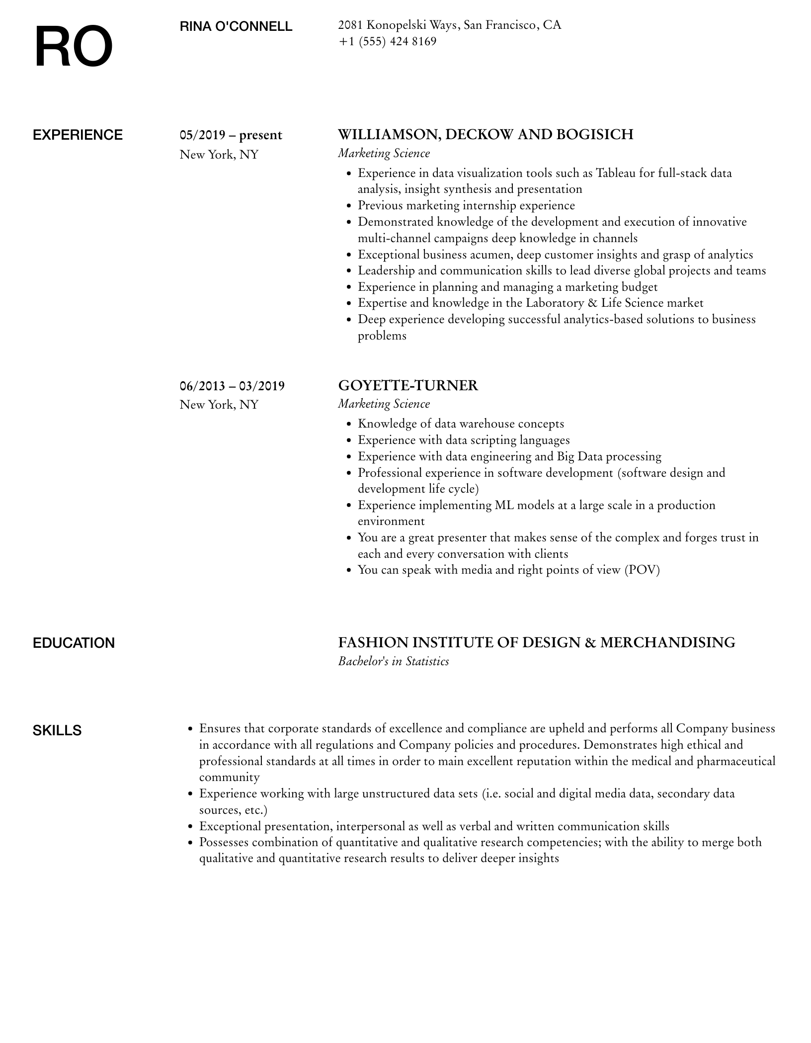 Guide the recruiter to the conclusion that you are the best candidate for the marketing science job. It’s actually very simple. Tailor your resume by picking relevant responsibilities from the examples below and then add your accomplishments. This way, you can position yourself in the best way to get hired.