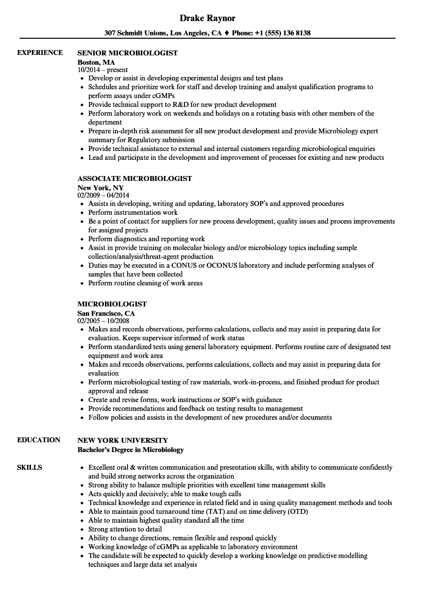 Microbiologist Resume Samples