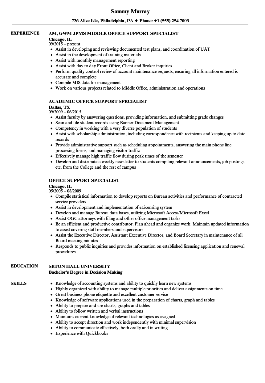 Guide the recruiter to the conclusion that you are the best candidate for the office support specialist job. It’s actually very simple. Tailor your resume by picking relevant responsibilities from the examples below and then add your accomplishments. This way, you can position yourself in the best way to get hired.