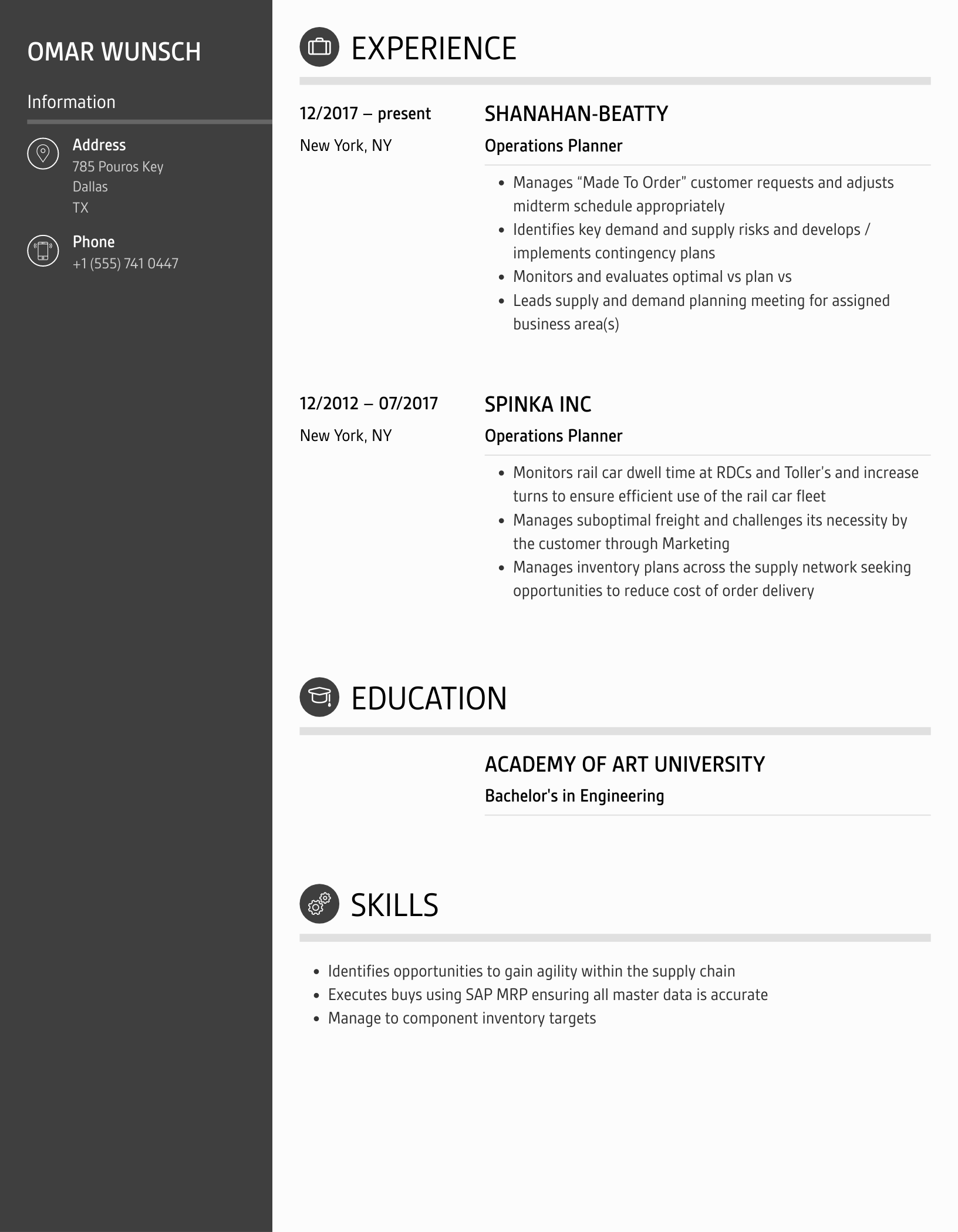 Guide the recruiter to the conclusion that you are the best candidate for the operations planner job. It’s actually very simple. Tailor your resume by picking relevant responsibilities from the examples below and then add your accomplishments. This way, you can position yourself in the best way to get hired.