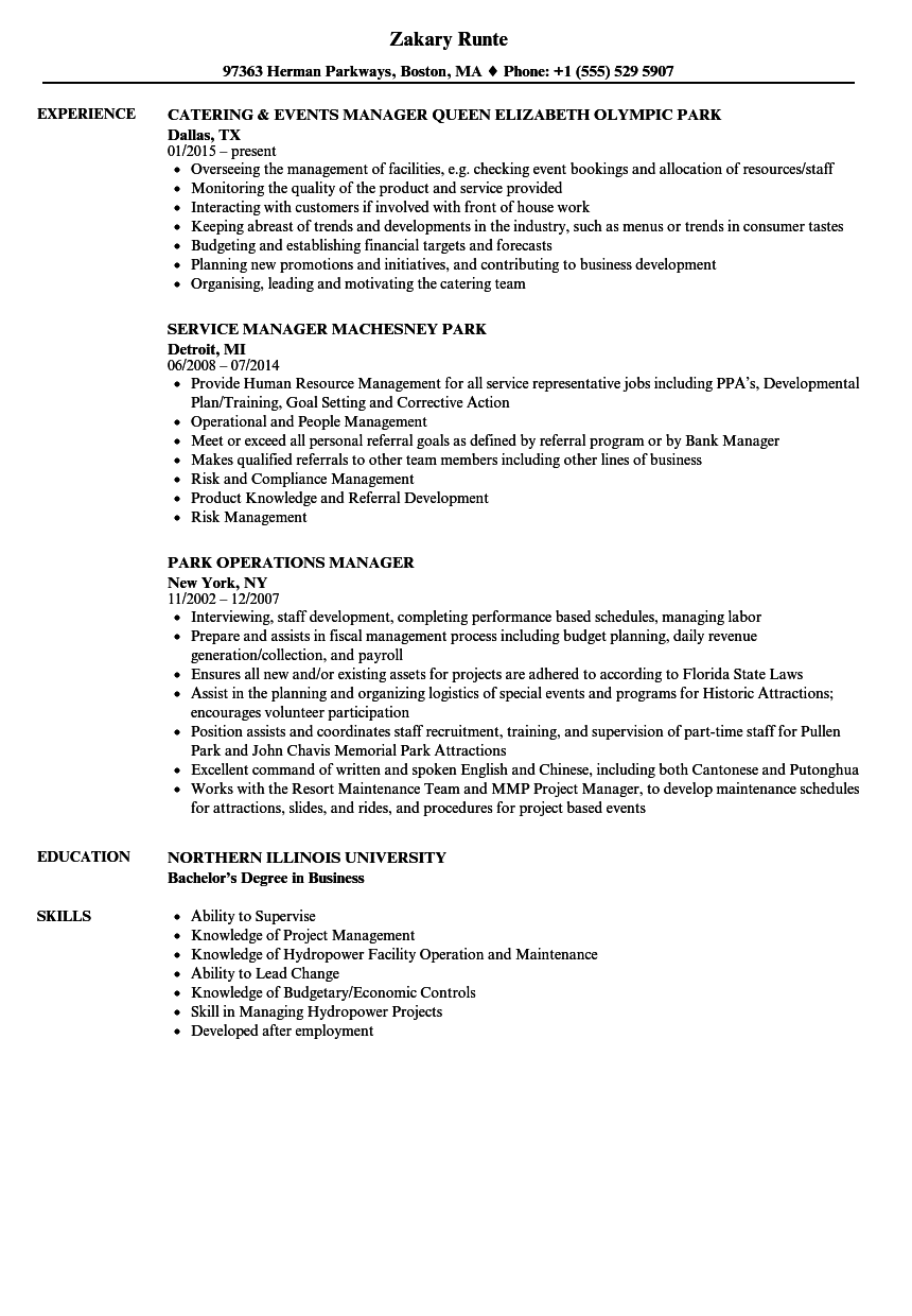 Guide the recruiter to the conclusion that you are the best candidate for the park manager job. It’s actually very simple. Tailor your resume by picking relevant responsibilities from the examples below and then add your accomplishments. This way, you can position yourself in the best way to get hired.