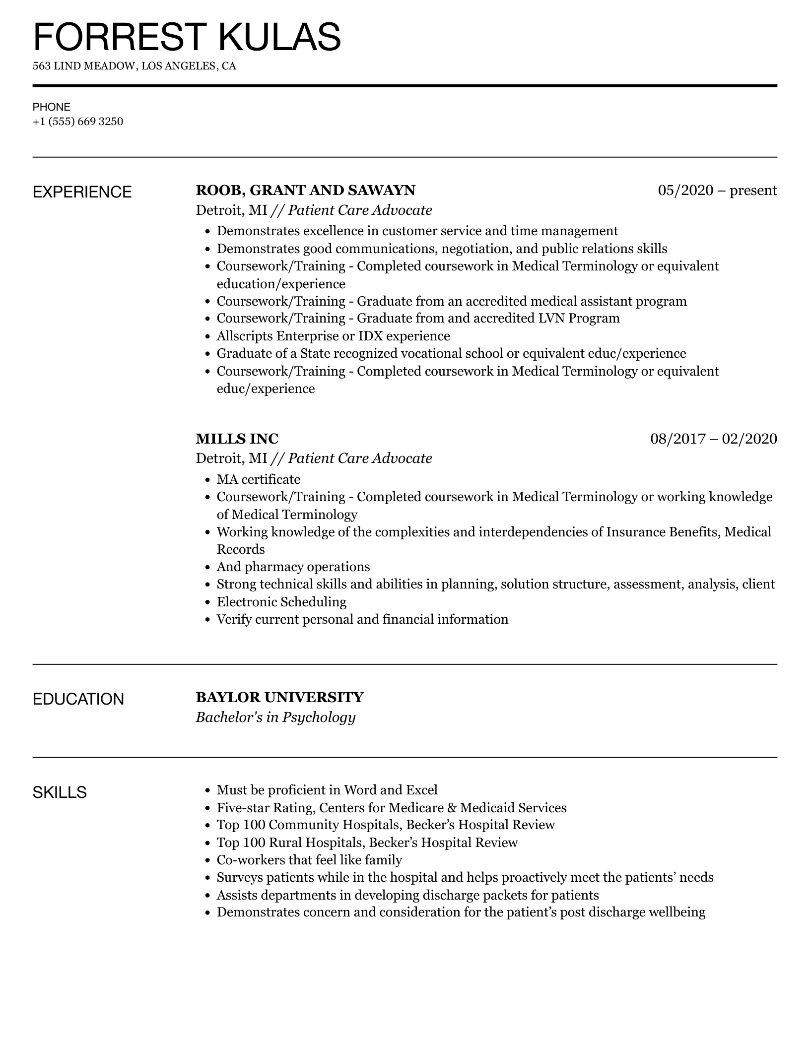 5 Patient Care Advocate resume templates