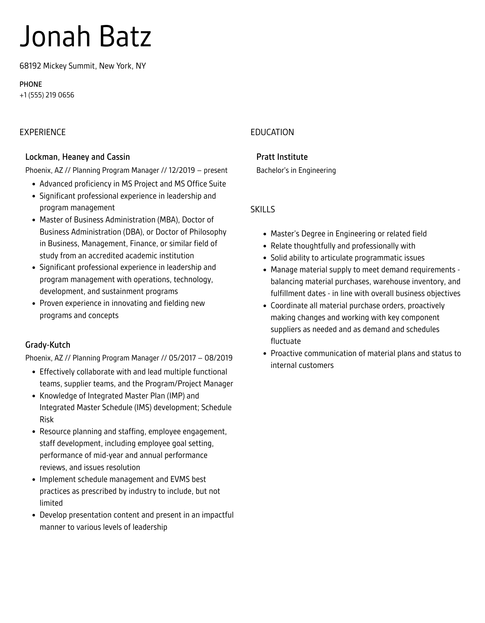Guide the recruiter to the conclusion that you are the best candidate for the planning program manager job. It’s actually very simple. Tailor your resume by picking relevant responsibilities from the examples below and then add your accomplishments. This way, you can position yourself in the best way to get hired.
