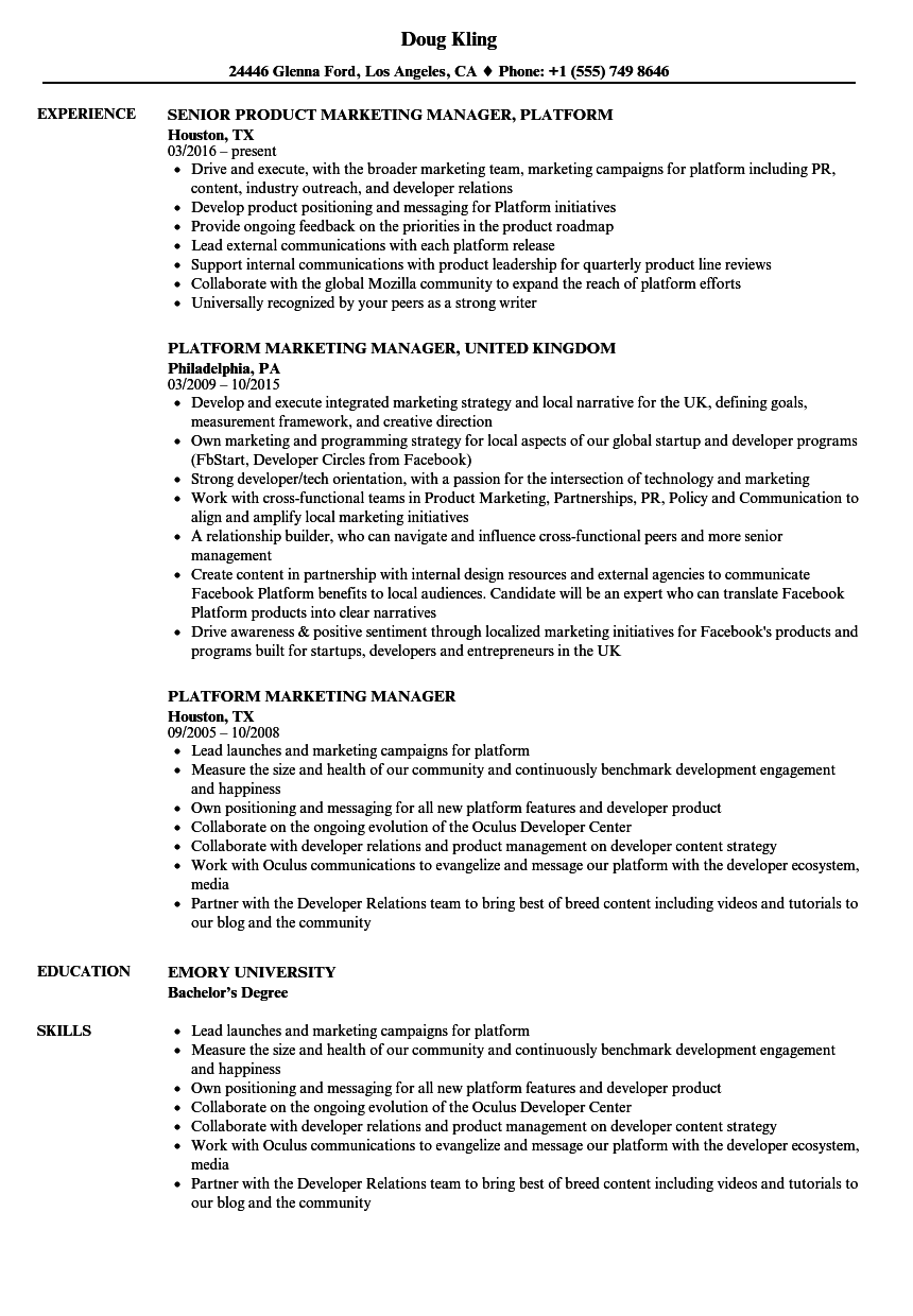 Platform Marketing Manager Resume Examples & Samples