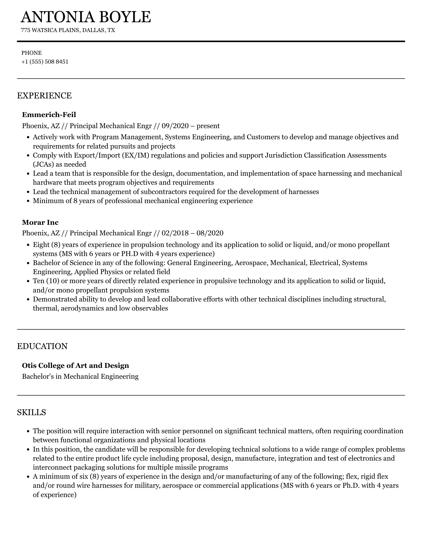 Senior Principal Mechanical Engr Resume Examples & Samples