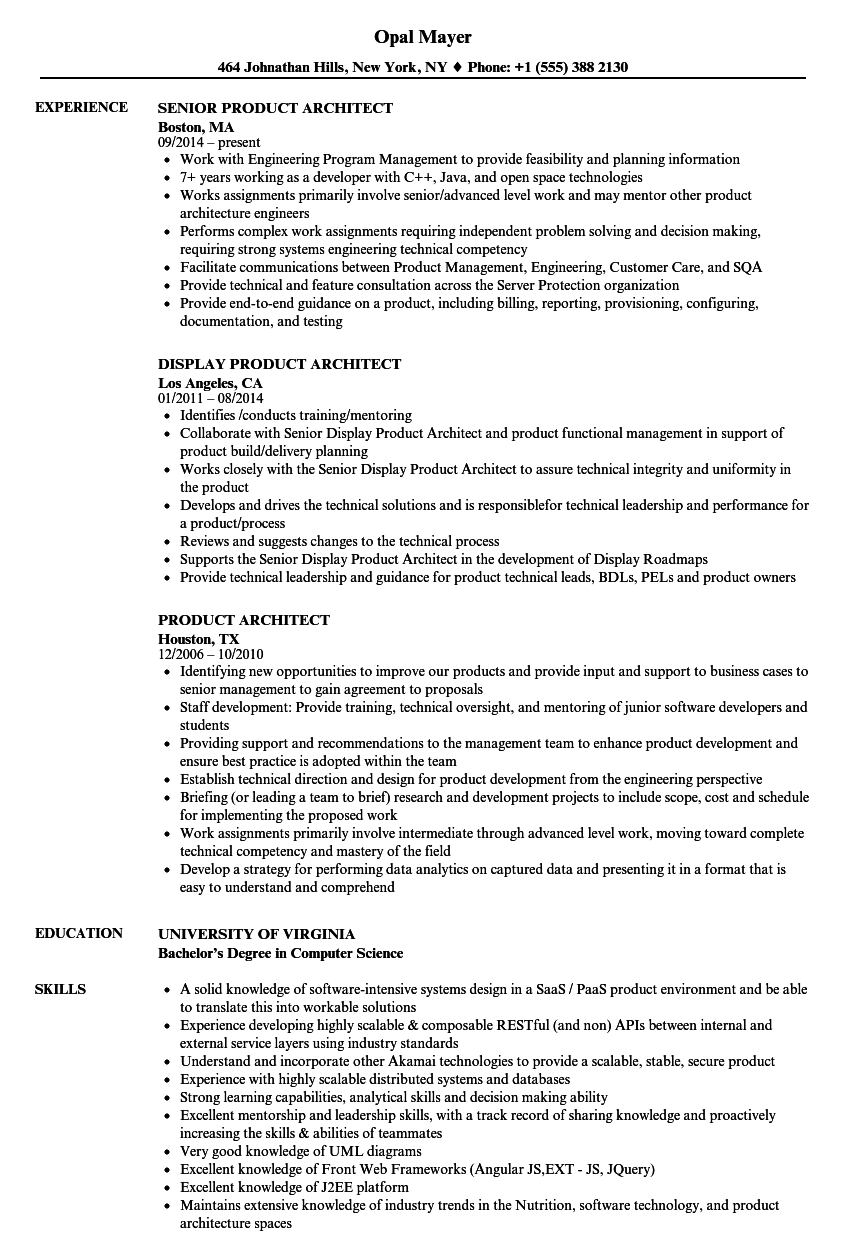 Guide the recruiter to the conclusion that you are the best candidate for the product architect job. It’s actually very simple. Tailor your resume by picking relevant responsibilities from the examples below and then add your accomplishments. This way, you can position yourself in the best way to get hired.