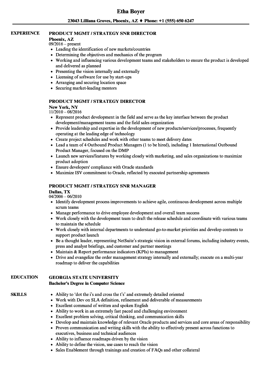 Product Mgmt / Strategy Snr Director Resume Examples & Samples