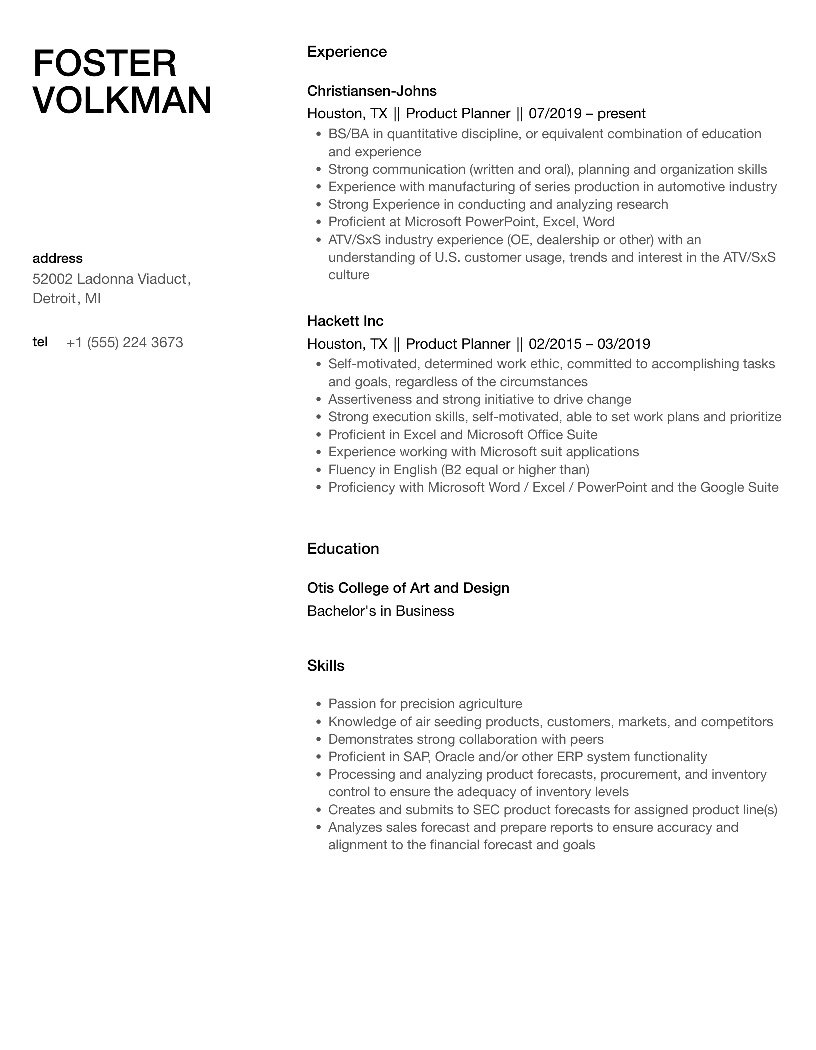 Guide the recruiter to the conclusion that you are the best candidate for the product planner job. It’s actually very simple. Tailor your resume by picking relevant responsibilities from the examples below and then add your accomplishments. This way, you can position yourself in the best way to get hired.