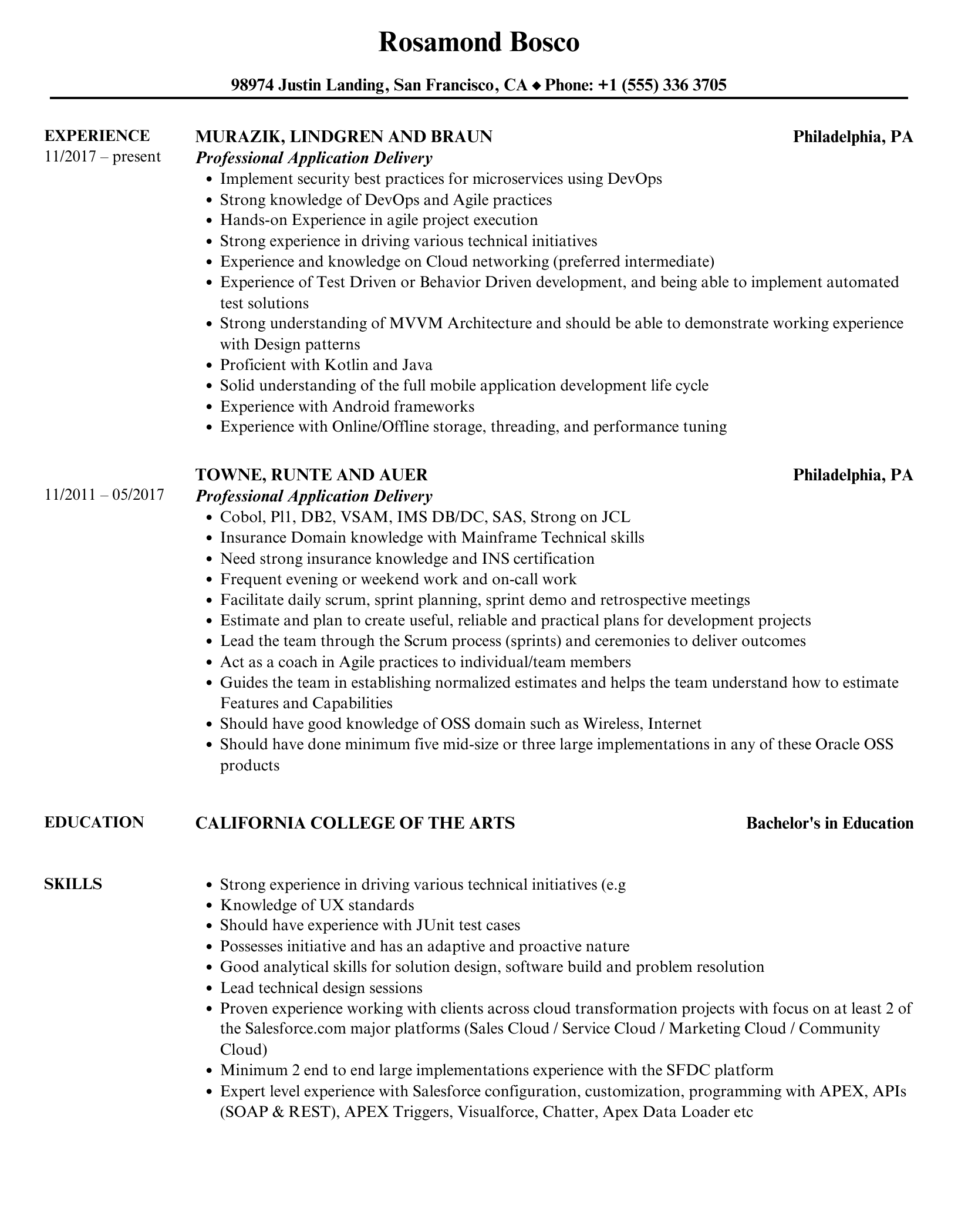 Senior Professional Application Delivery Resume Examples & Samples